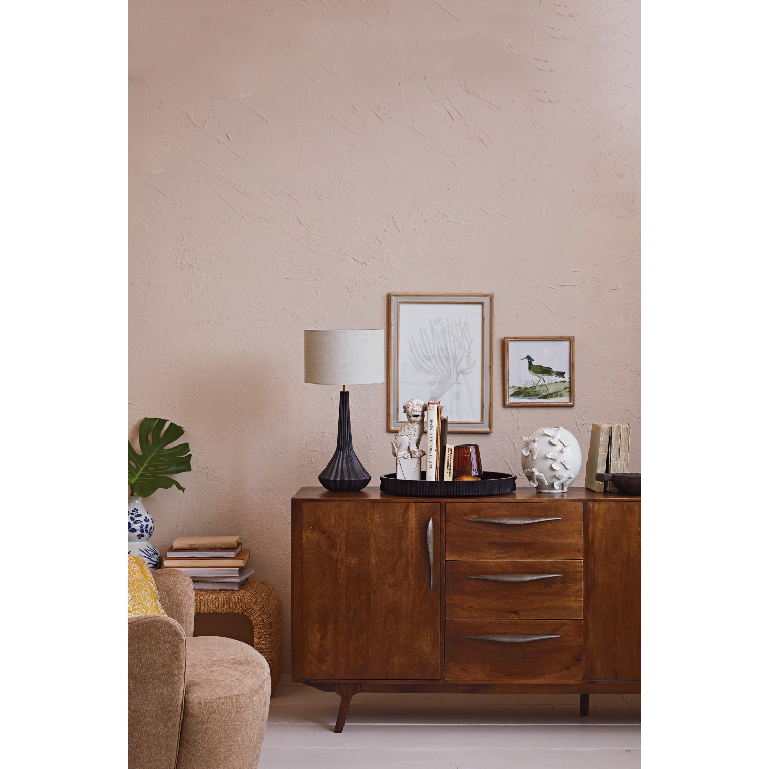 This resin pleated tray with handles in black is a beautiful and practical addition to any home. It is made of resin, which is a high-quality and durable material that is lightweight and easy to clean. It has a pleated design that creates a textured and elegant effect on the surface, making it a unique and eye-catching serveware. It has handles that make it easy to carry and transport. It has a round shape that is perfect for serving drinks, snacks, desserts, or appetizers, or for displaying candles, plants, or ornaments on a table or countertop. It can suit any farmhouse, industrial, vintage, or French country style kitchen or dining room. It measures 20 inches in diameter and 2 inches in height, making it a generous and spacious tray. This will impress the guests and enhance the food presentation.