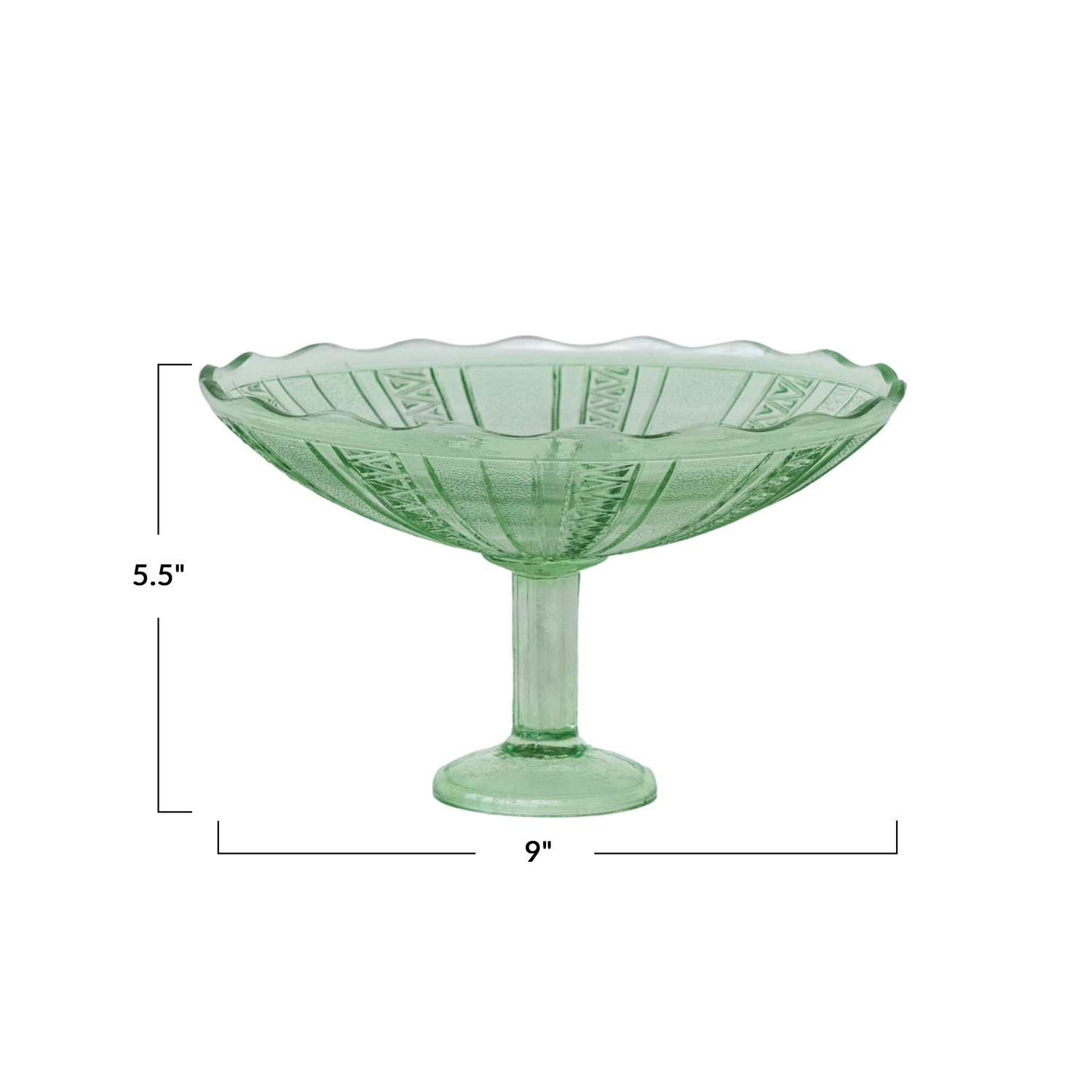 Catalog Name: 9" Round x 5-1/2"H Pressed Glass Vintage Reproduction Scalloped Footed Bowl, Green