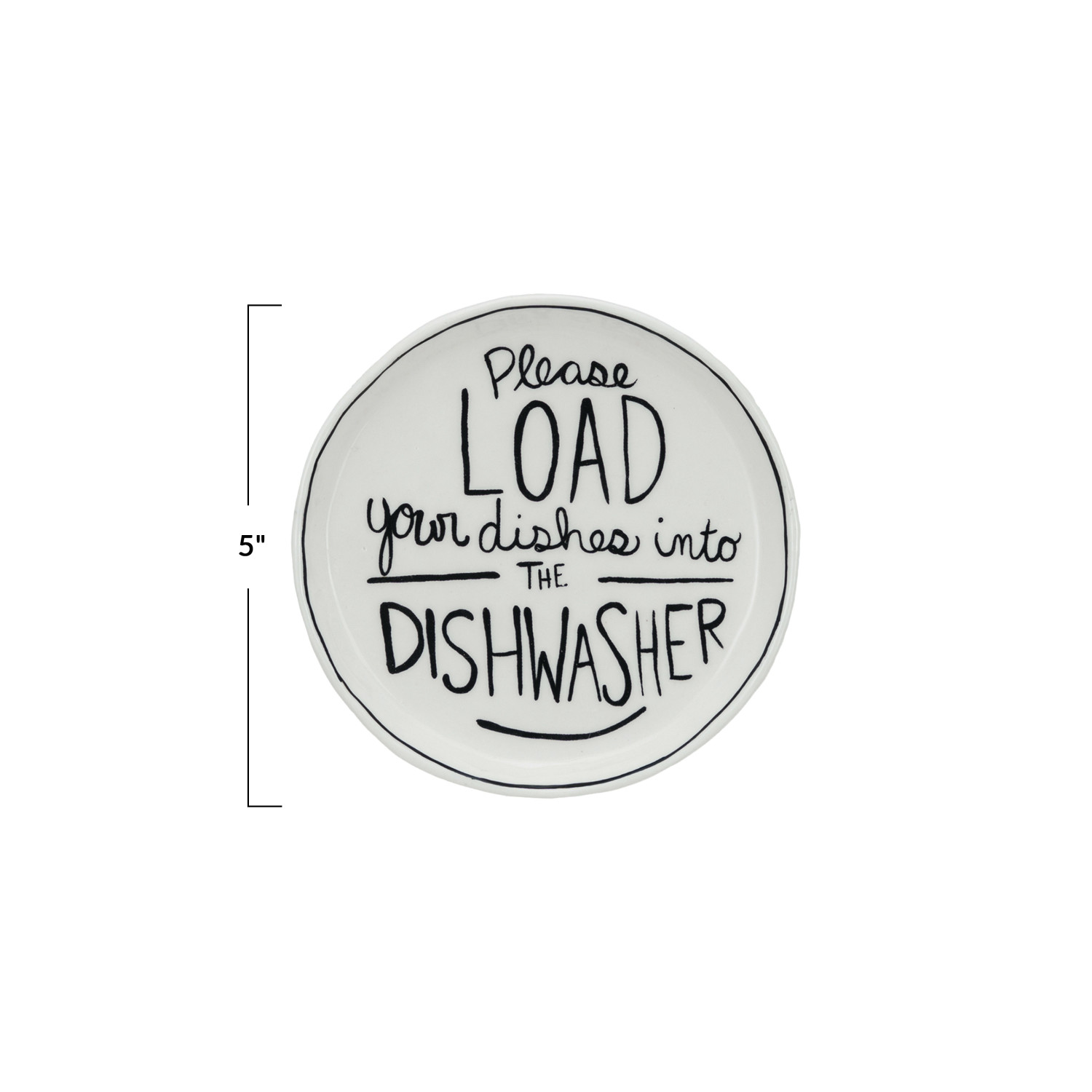 Catalog Name: 5" Round Stoneware Dish w/ Saying “Please Load Your Dishes…”, White & Black ©