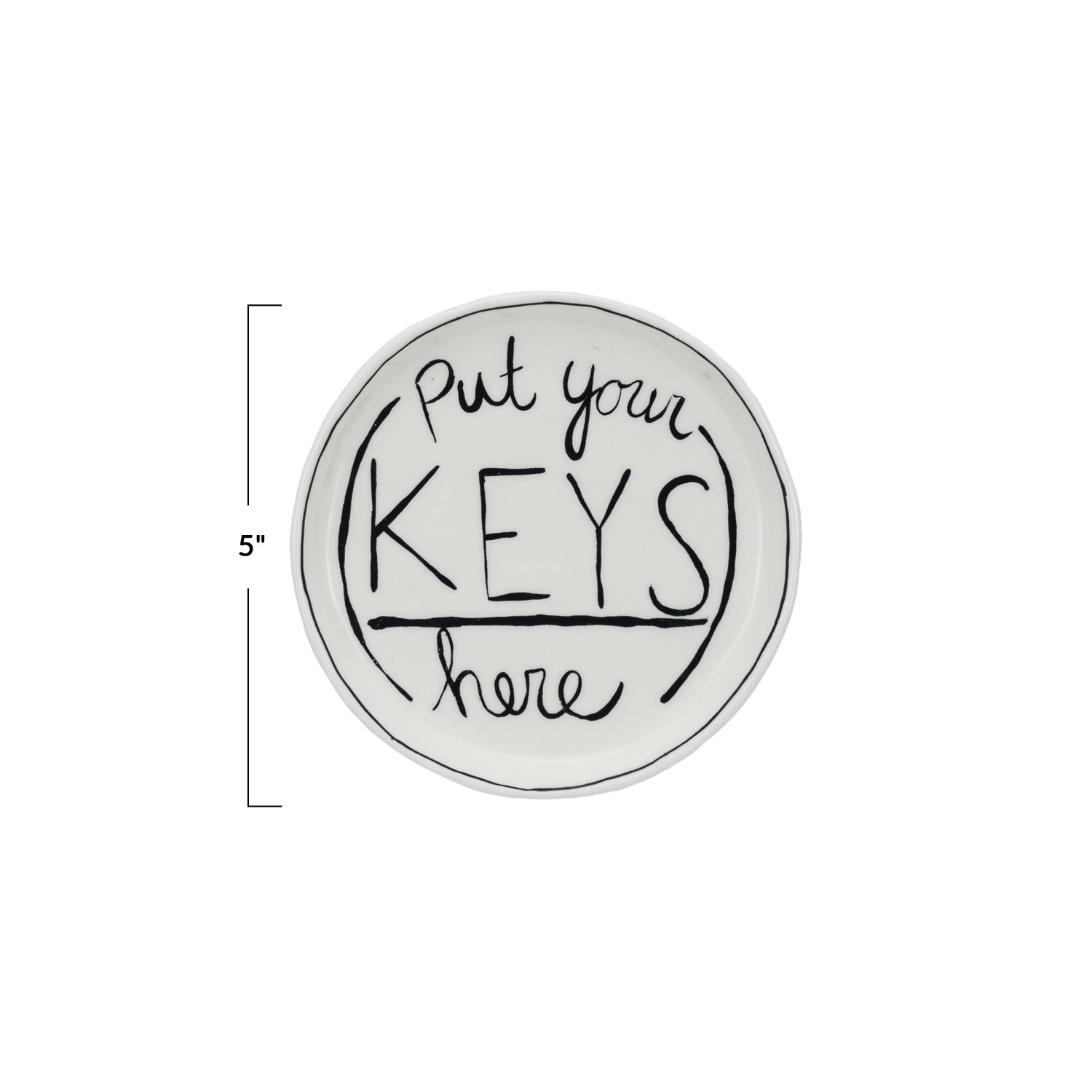 Catalog Name: 5" Round Stoneware Dish w/ Saying “Put Your Keys Here”, White & Black ©