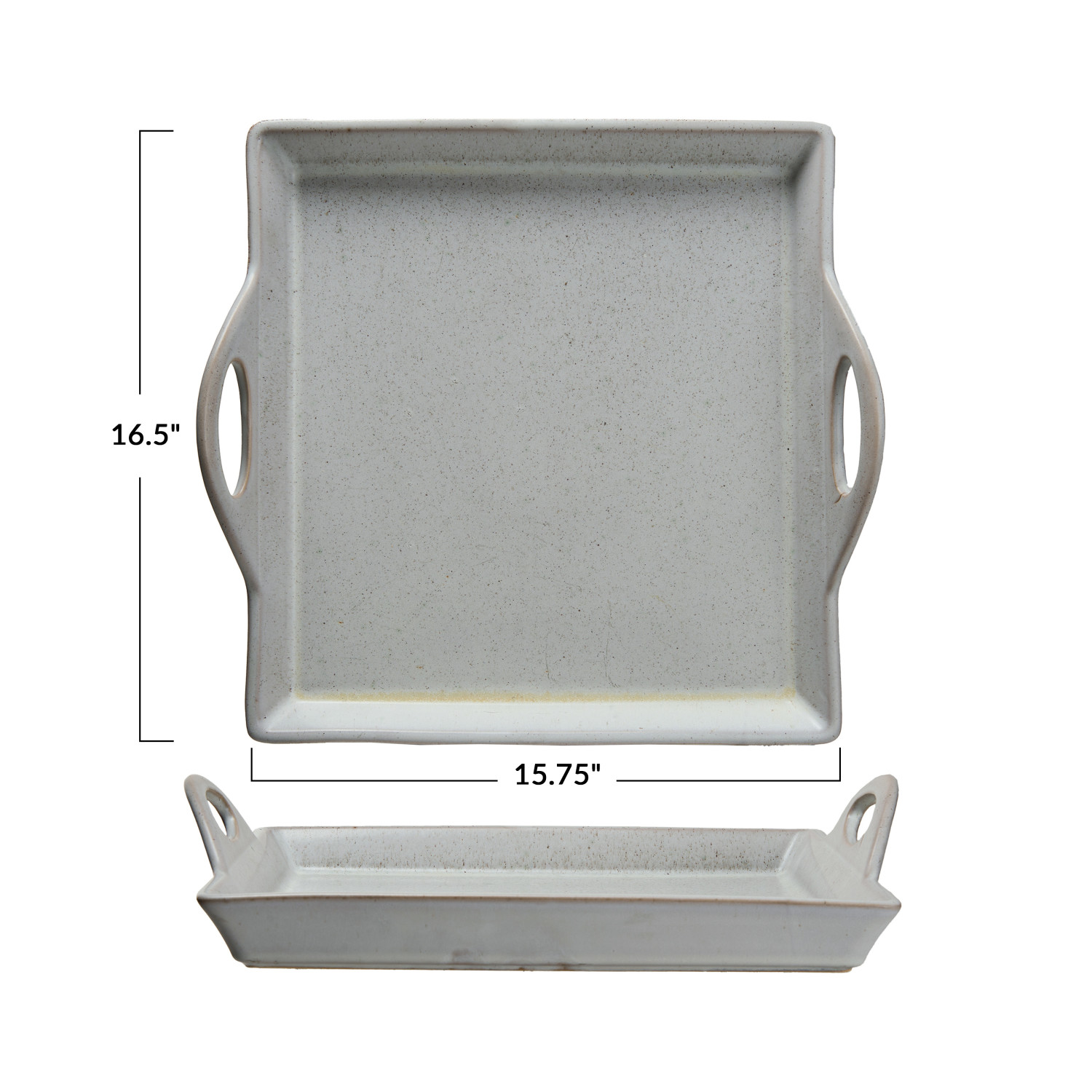 Catalog Name: 16-1/2"L x 15-3/4"W x 3-3/4"H Stoneware Tray w/ Handles, Antique White