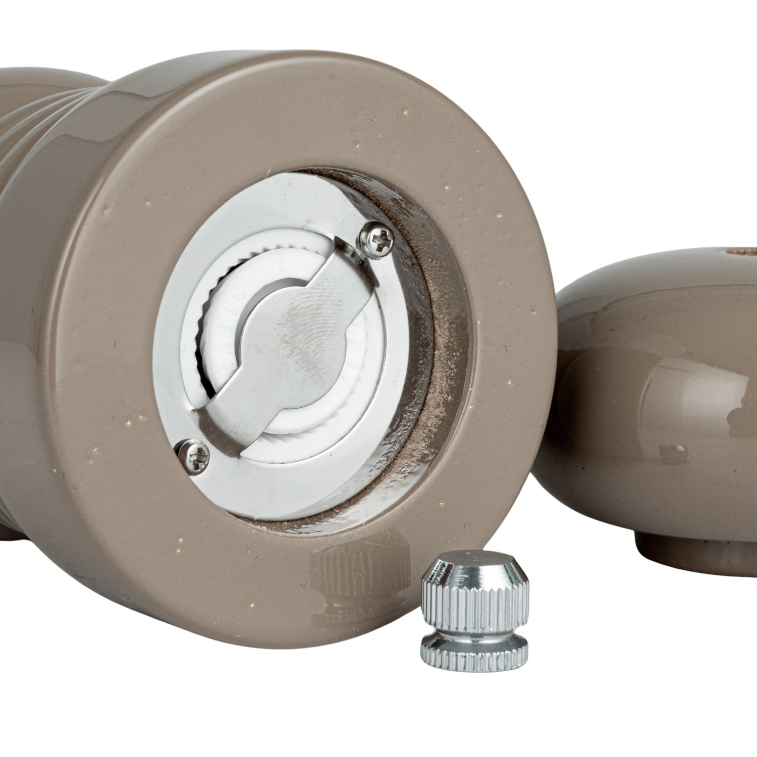 Catalog Name: 2-1/4" Round x 8"H Enameled Rubberwood Salt/Pepper Mill, Grey