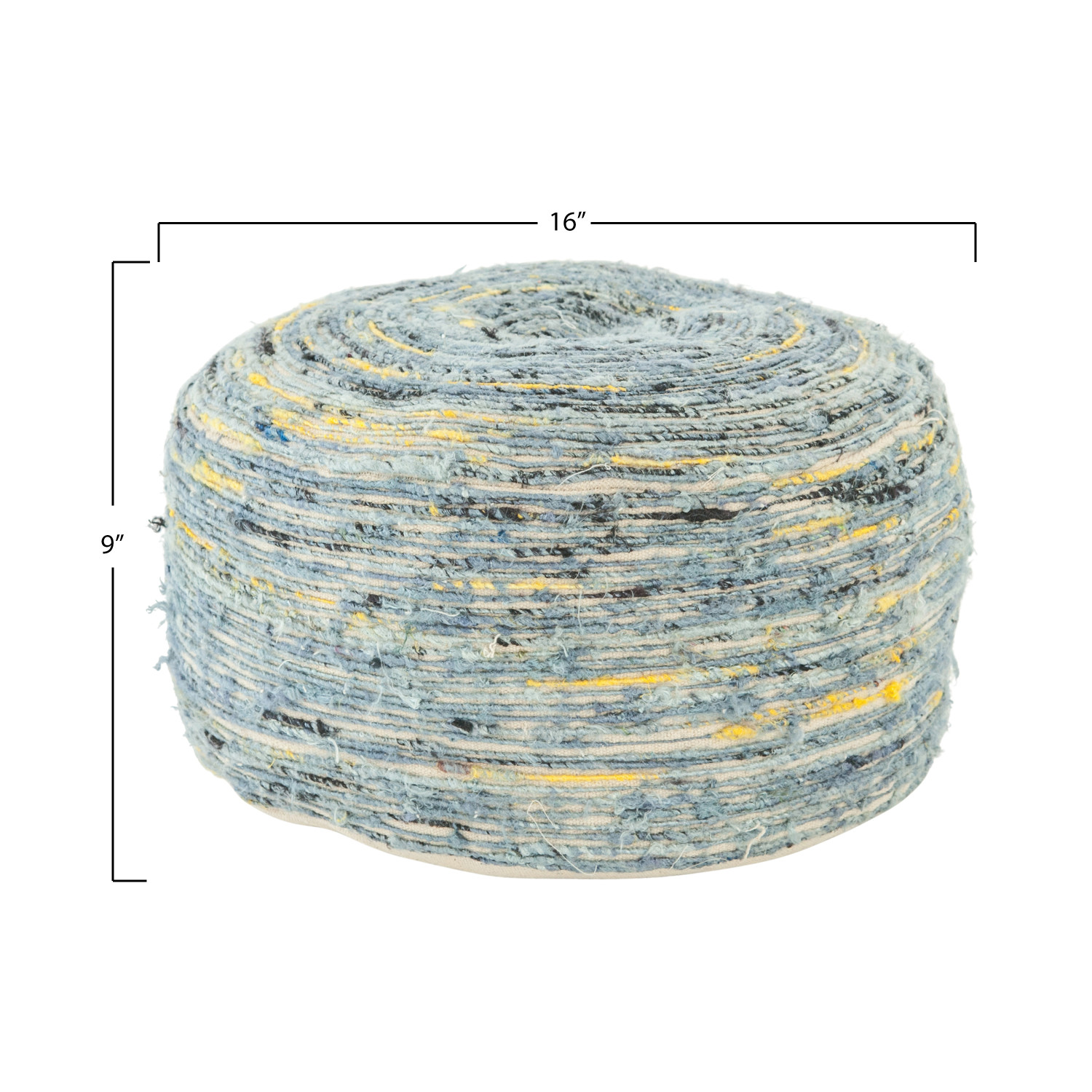Catalog Name: 16" Round x 9"H Cotton Pouf, Multi Color