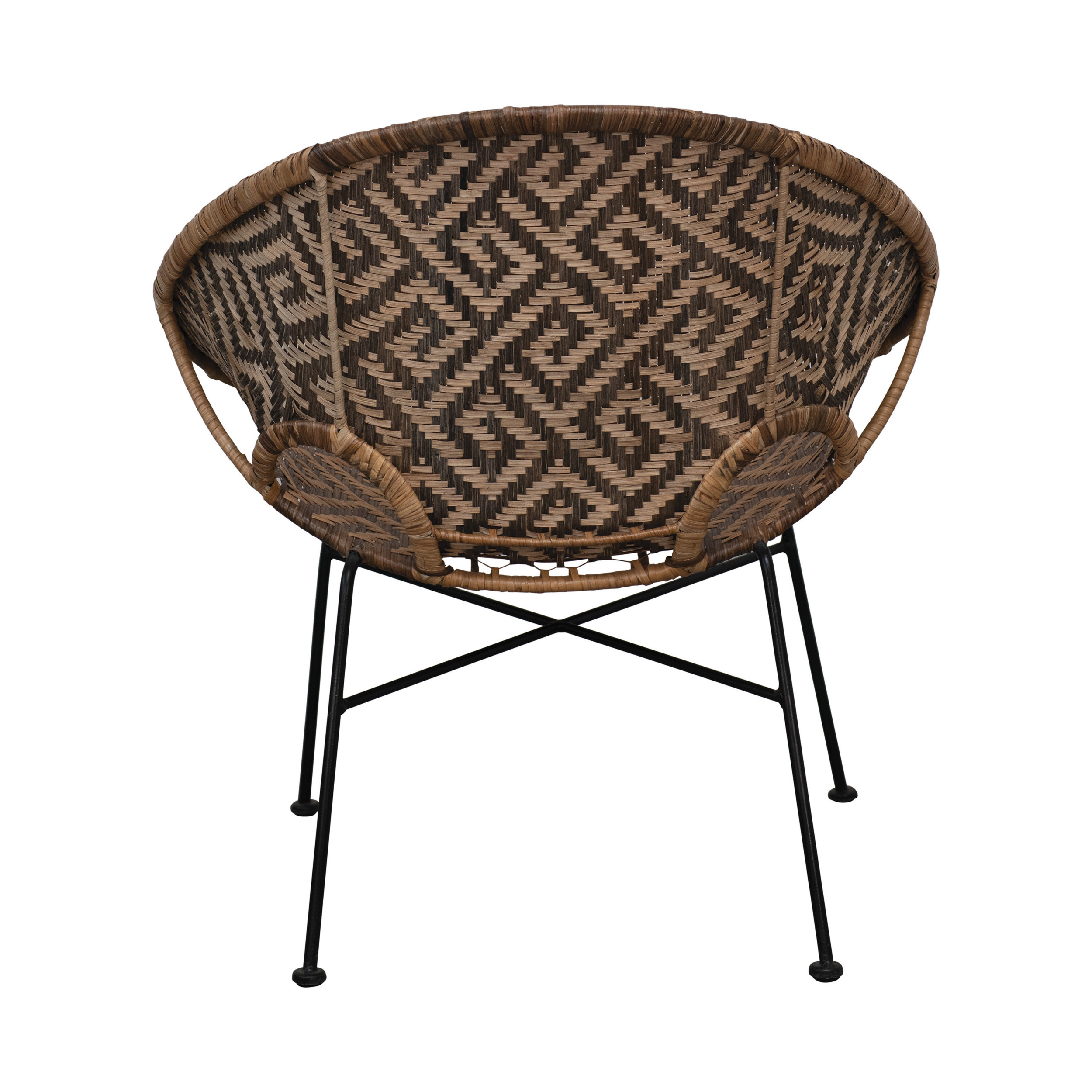 Catalog Name: 28"W x 28"D x 30"H Hand-Woven Rattan Chair w/ Pattern, Natural w/ Black Metal Frame