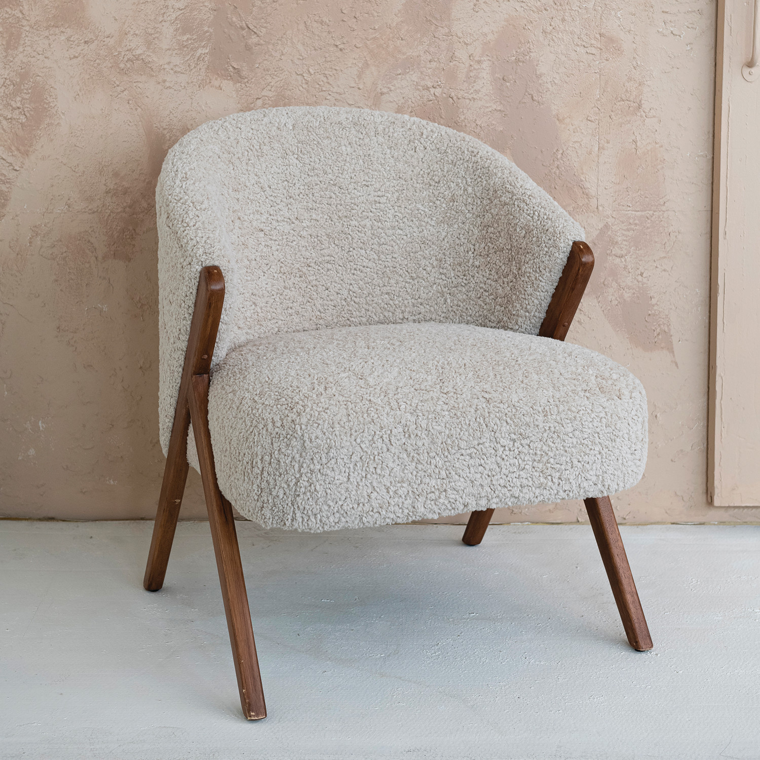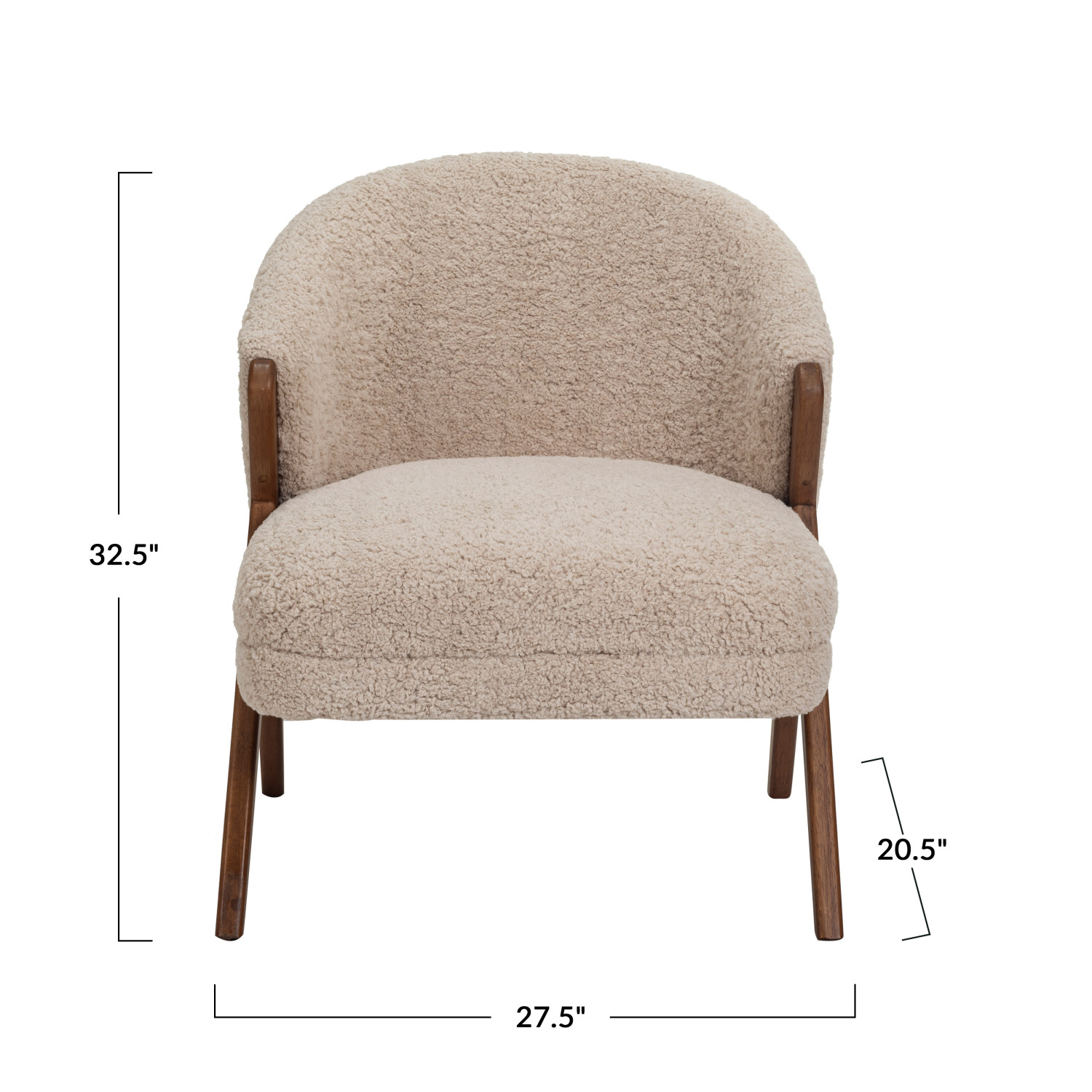 Catalog Name: 27-1/2"W x 20-1/2"D x 31-1/2"H Bouclé Fabric Upholstered Chair w/ Rubberwood Legs, Oak Finish, Cream Color, Truck Ship