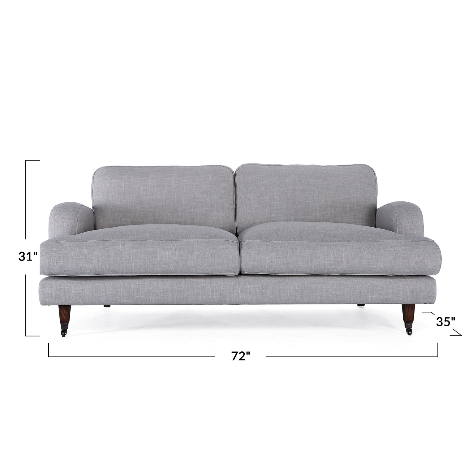 Catalog Name: 72"W x 35"D x 31"H Fabric Upholstered Sofa w/ Wood Legs on Casters, Espresso Finish, Grey, Truck Ship