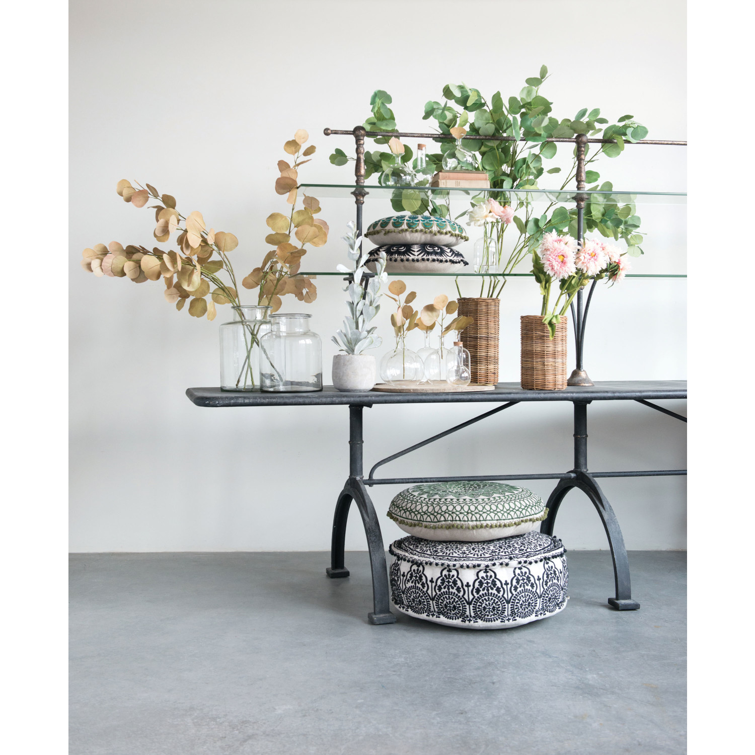 Catalog Name: 118"L x 31-1/2"W x 68-3/4"H Metal Vintage Reproduction Bakery Table w/ 2 Glass Shelves, Distressed Black, KD, Truck Ship