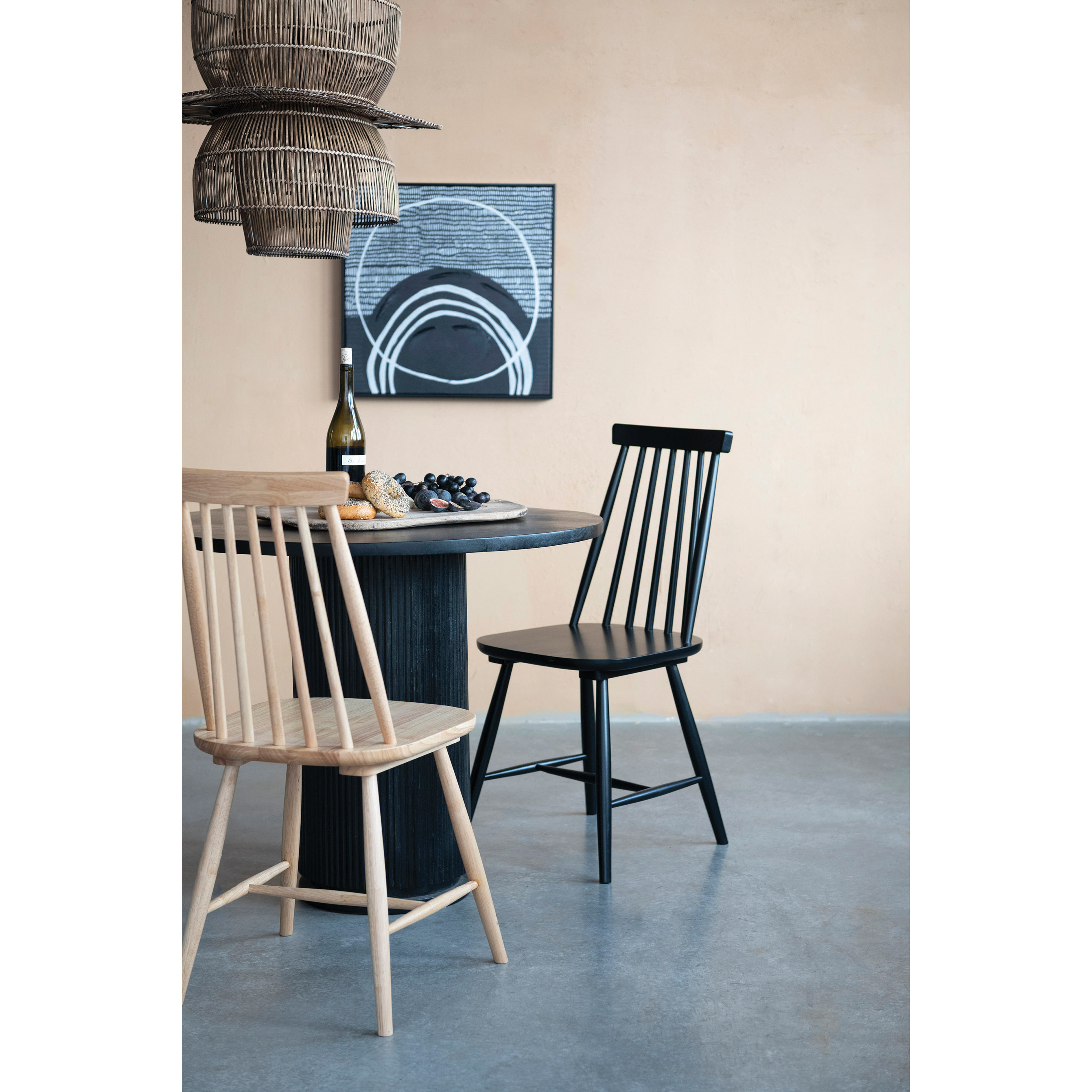 Add a simple and elegant touch to the home with this mango wood round table, featuring a smooth and natural tabletop and a black ribbed base. Ideal for Scandinavian, modern, or minimalist décor-styles, this table can blend in with any color scheme or theme. Features a spacious round tabletop that can be used for dining, working, or displaying decor, and a sturdy and stylish black ribbed base that offers support and stability. Made of mango wood, this table is durable and eco-friendly, with natural variations in color and texture that add to its charm.
