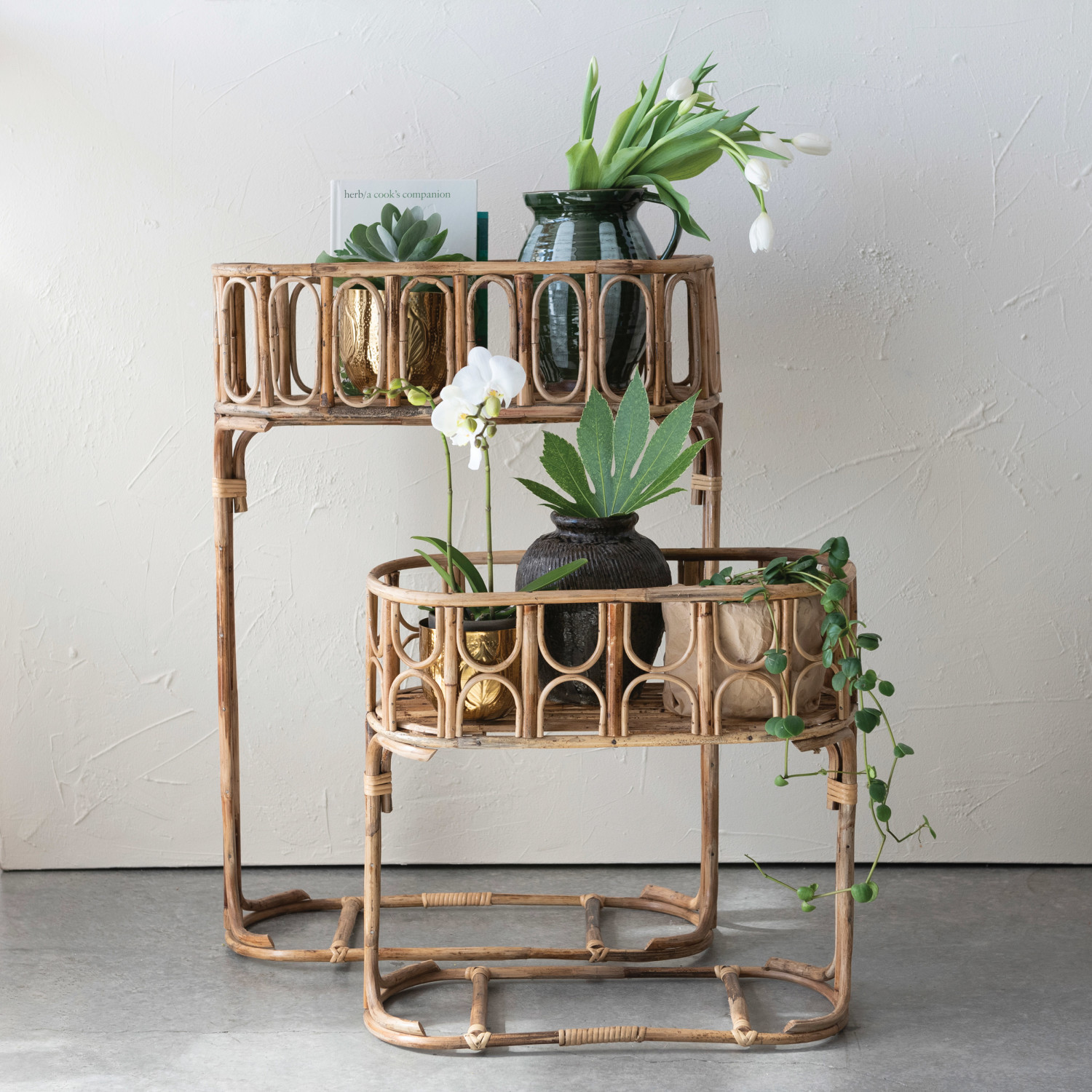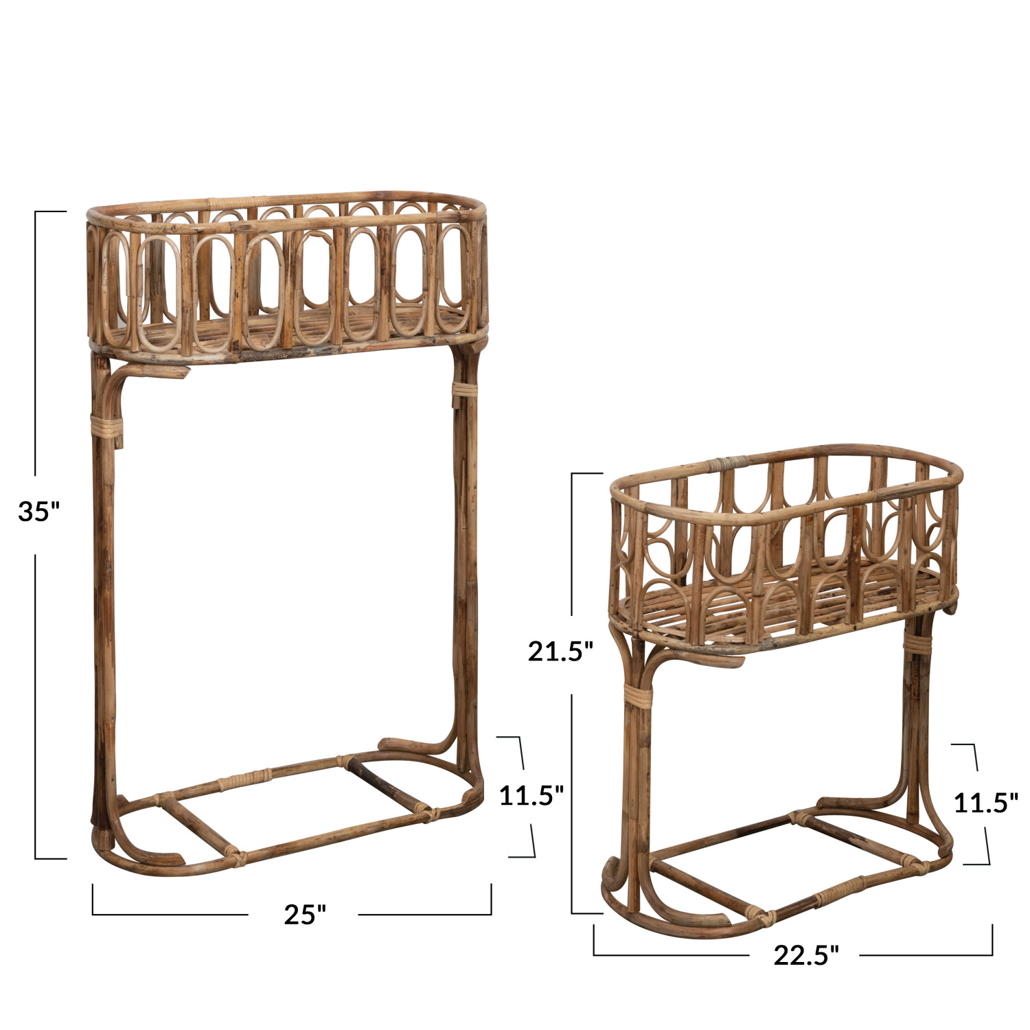 Catalog Name: 25"L x 11-1/2"W x 35"H & 22-1/2"L x 11-1/2"W x 21-1/2"H Handmade Rattan Plant Stands/Containers, Natural, Set of 2