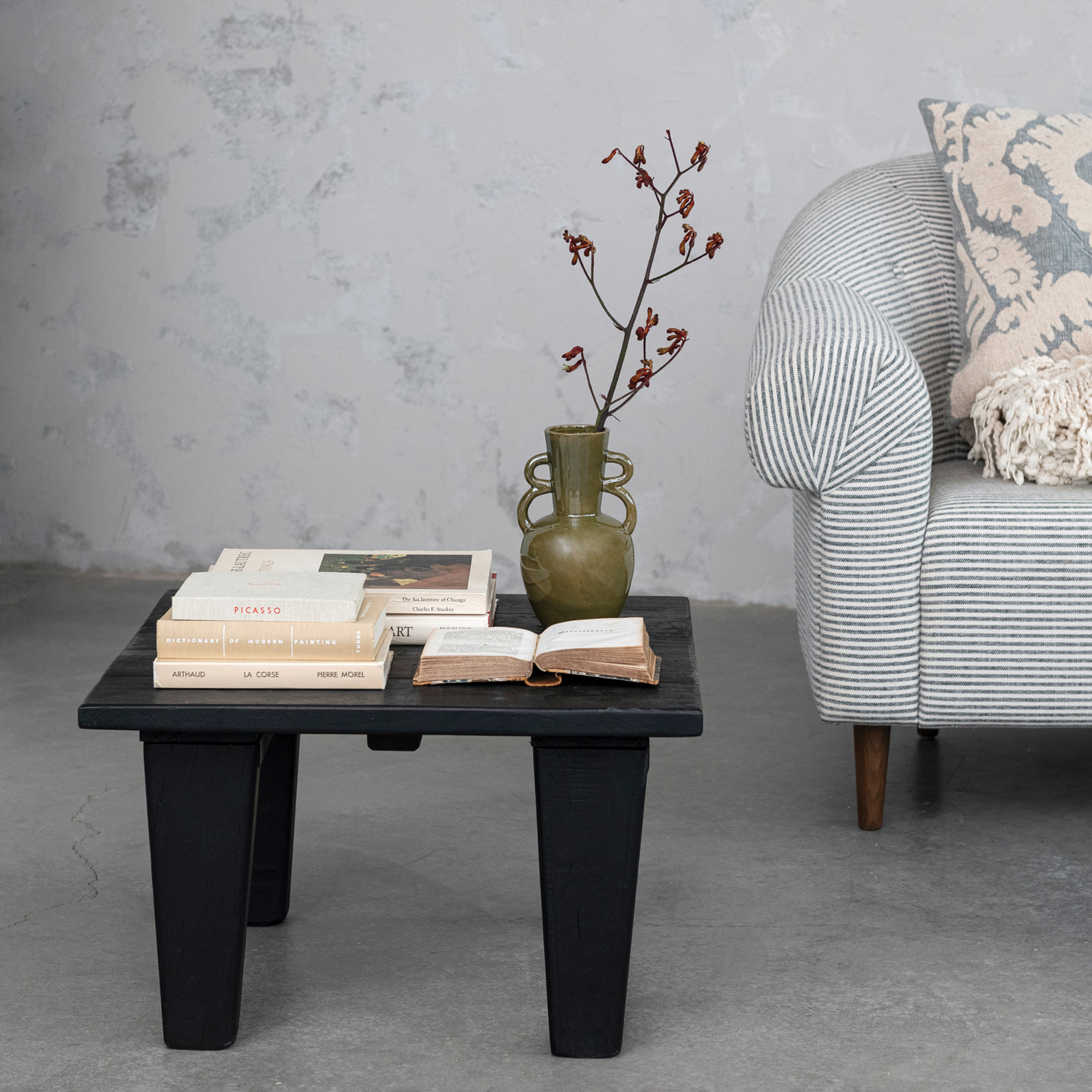 This charming Reclaimed Wood Square Side Table in Black is a versatile and eco-friendly piece that showcases the natural beauty and character of the reclaimed wood. It has a sturdy 1-inch thick top and a metal base with a black finish, creating a striking contrast. It can be used as a coffee table, a nightstand, or a display stand, adding warmth and character to any room. It has KD legs and 4 knockdown legs for easy assembly and disassembly, and a weight capacity of 220 pounds. It fits well with rustic, farmhouse, and industrial interior styles, adding some vintage charm and industrial touch to the space. It measures 24 inches in length, 24 inches in width, and 14 inches in height, providing a versatile surface for displaying or storing items. This Reclaimed Wood Square Side Table in Black elevates the home décor with its vintage charm and eco-conscious elegance. A cozy and rustic side table that features a reclaimed wood top with a black finish and a metal base. Ideal for rustic, farmhouse, and industrial home décor styles, adding a touch of vintage charm to any setting. Features a top that is one inch thick, offering ample space for displaying or storing items, such as lamps, vases, candles, or books. Made of reclaimed wood, an eco-friendly and sturdy material that has a rough and textured surface.