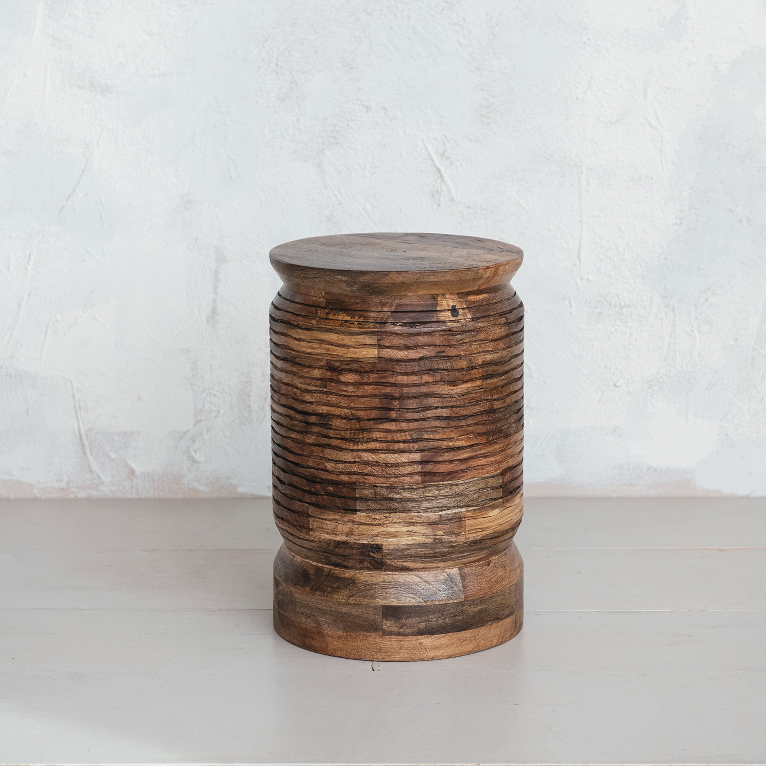 Catalog Name: 11-3/4" Round x 18"H Hand-Carved Mango Wood Table/Stool, Natural