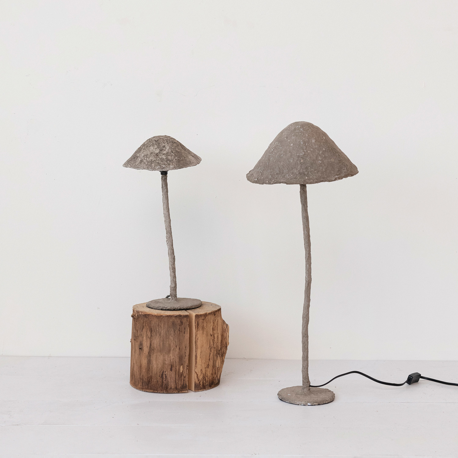 Catalog Name: 11" Round x 21"H Paper Mache & Metal Mushroom Shaped Table Lamp w/ Inline Switch, Grey