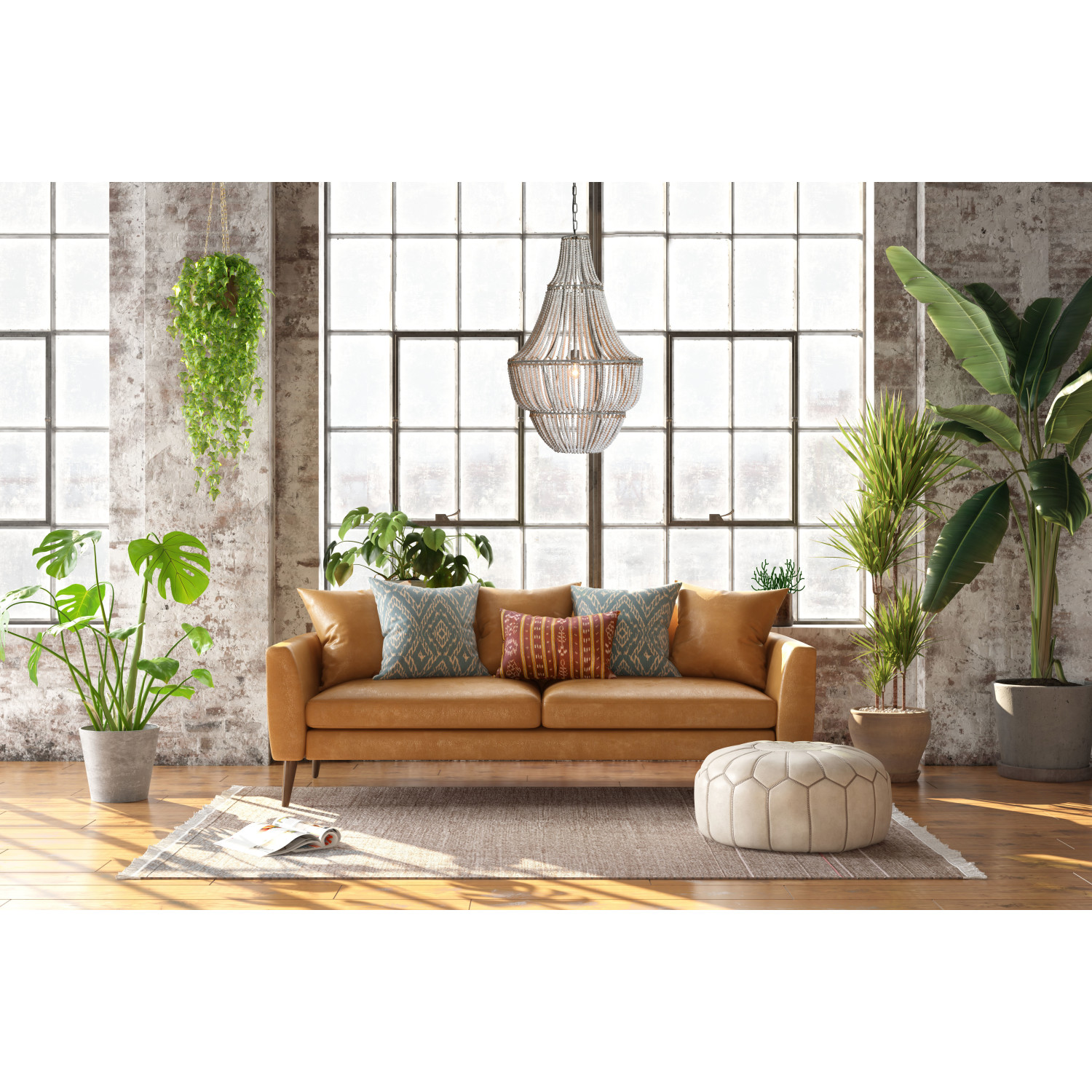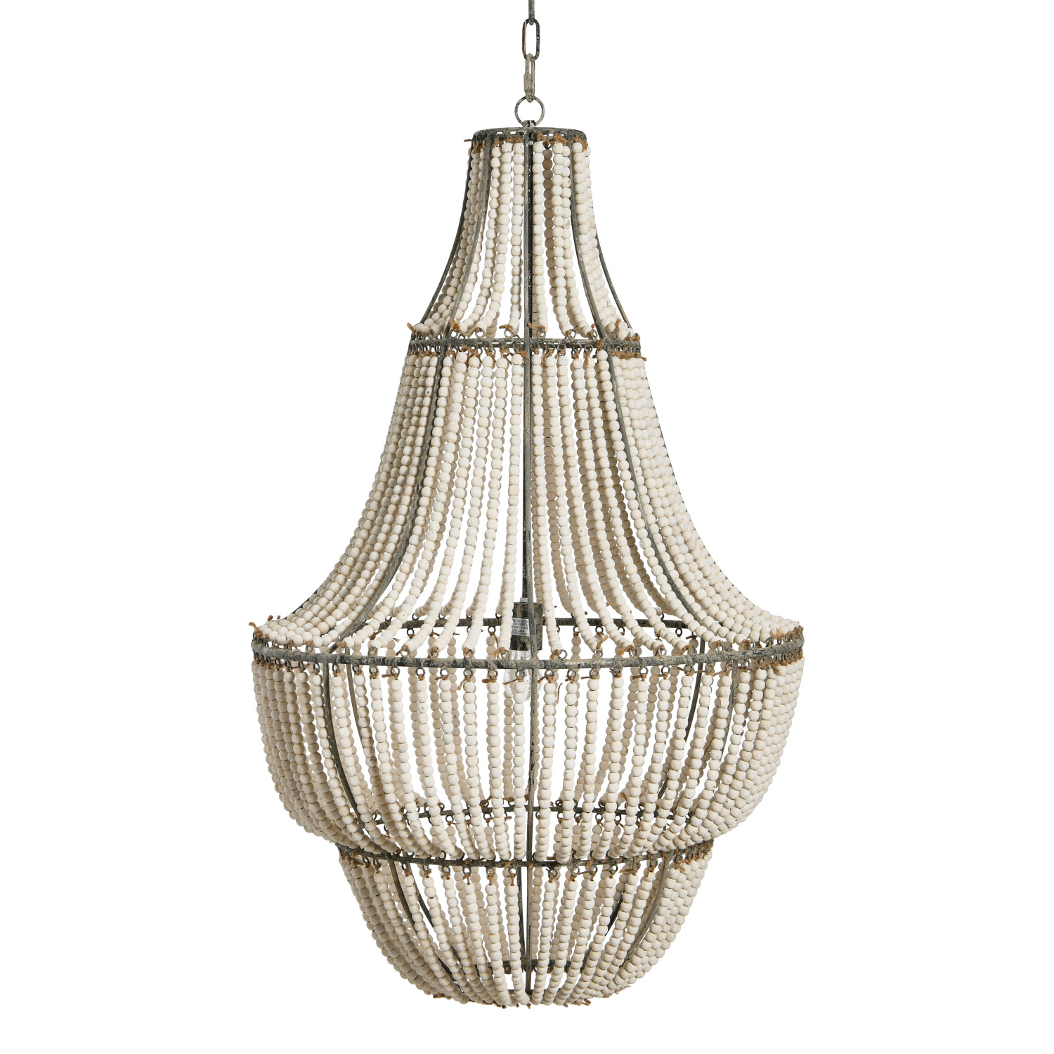 Catalog Name: 25-1/2" Round x 41-1/4"H Metal & Wood Bead Chandelier, 6' Chain & 10' Cord, Whitewashed, Truck Ship (40 Watt Bulb Maximum, Hardwire Only)