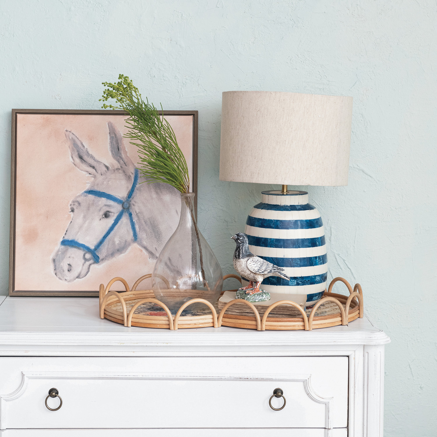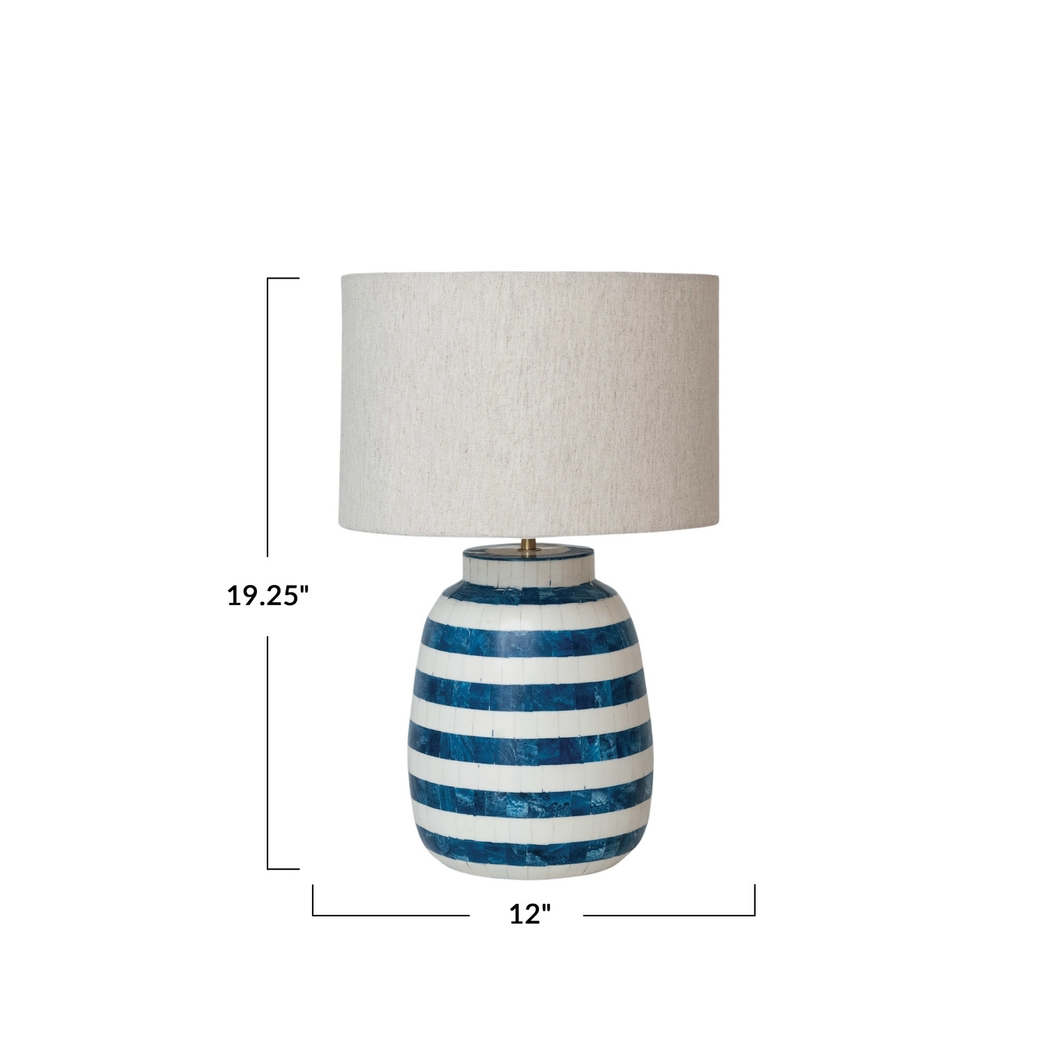 Catalog Name: 12" Round x 19-1/4"H Resin Inlaid Table Lamp w/ Stripes & Cotton Shade, White, Blue & Natural