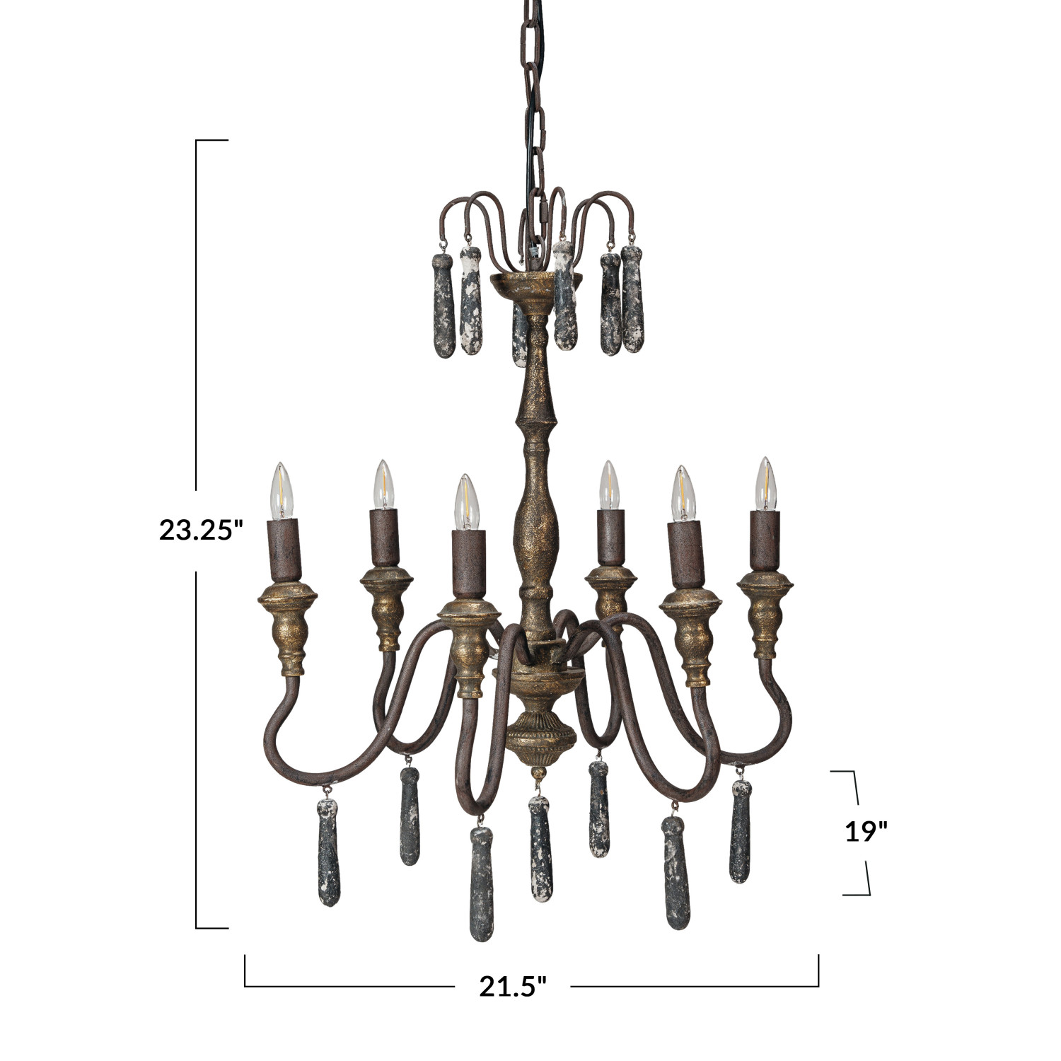 Catalog Name: 21-1/2"L x 19"W x 23-1/4"H Metal Pendant Lamp w/ Wood Drops & 6 Lights, 9' Cord, Distressed Gold Finish & Black (Hardwire Only)