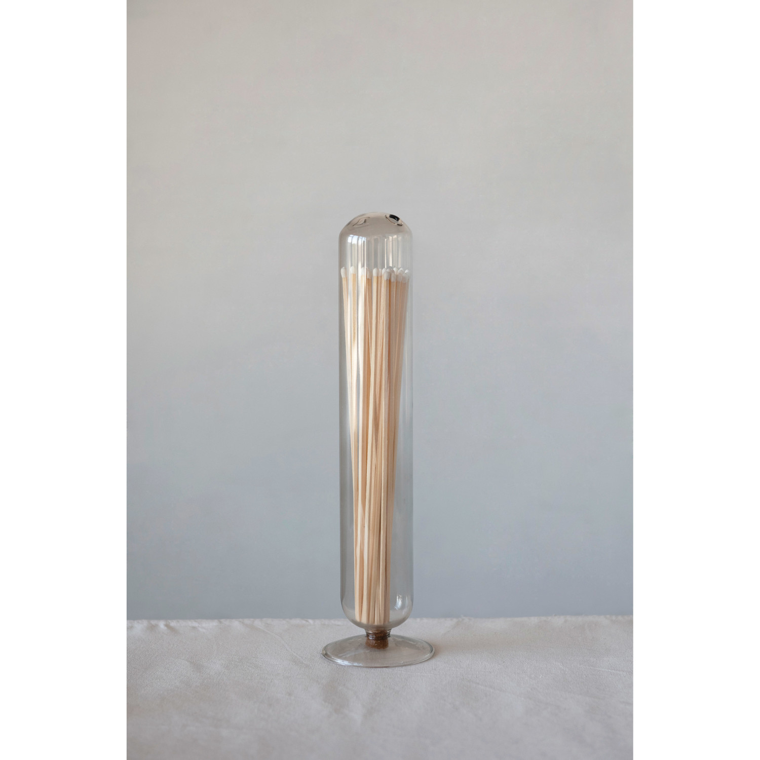 This charming glass fireplace match holder is perfect for displaying long match sticks. Functional, convenient, and useful all over your home. Matches stay safeley enclosed and beautifully on display in any room of your home. This match holder includes a detached striker plate for lighting matches.