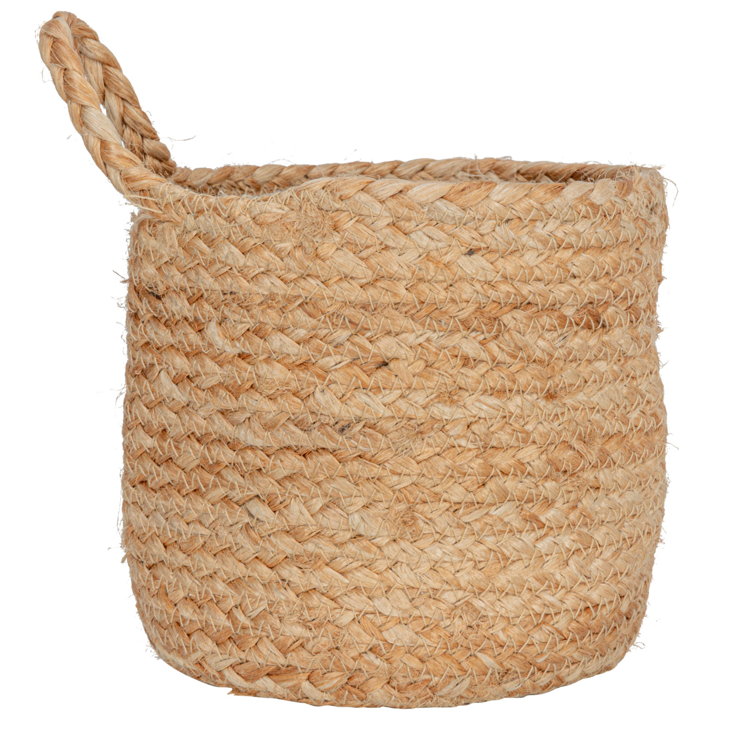 Catalog Name: 8" Round x 8"H, 7" Round x 7"H & 6" Round x 6"H Braided Jute Nesting Baskets w/ Handle, Natural, Set of 3