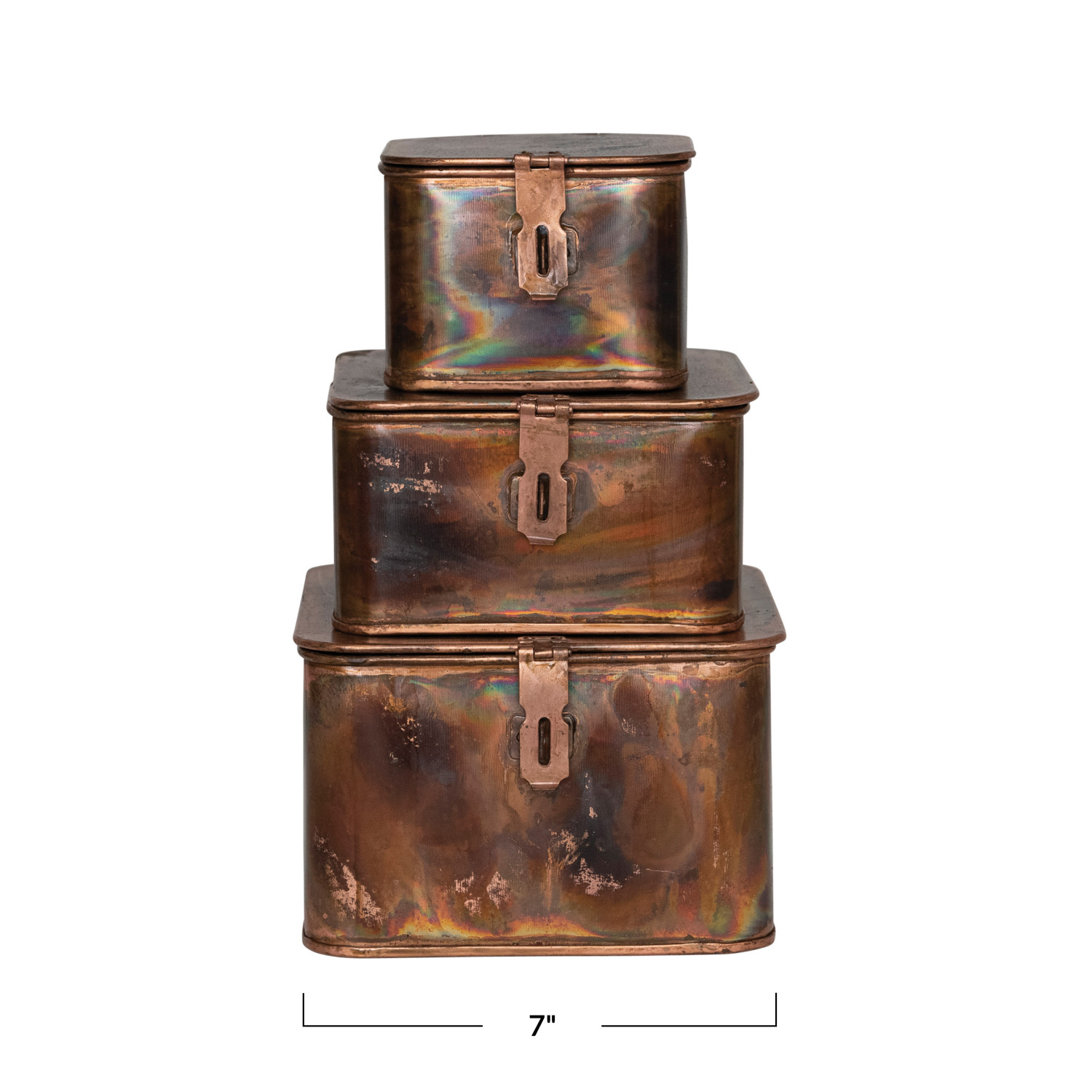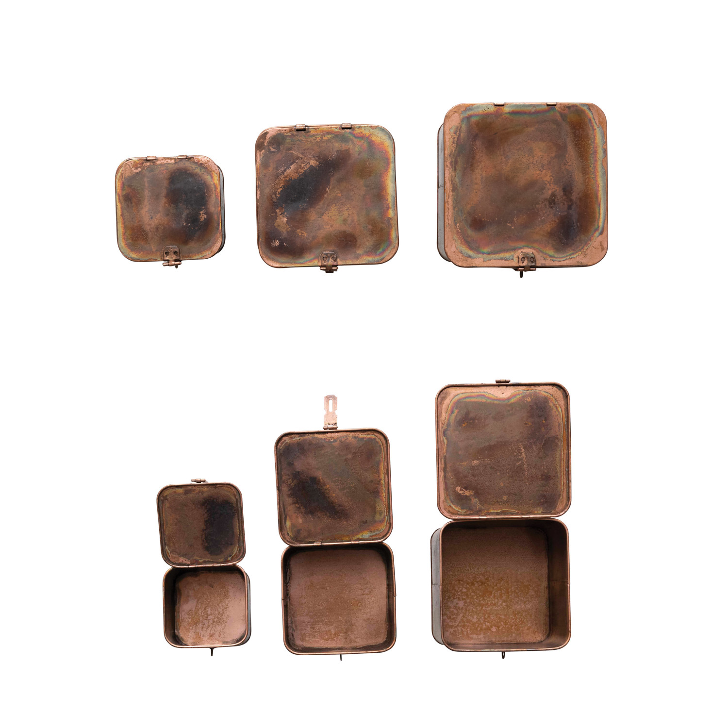 Catalog Name: 7" Square, 6" Square & 4-1/2" Square Decorative Metal Boxes, Burnt Copper Finish, Set of 3