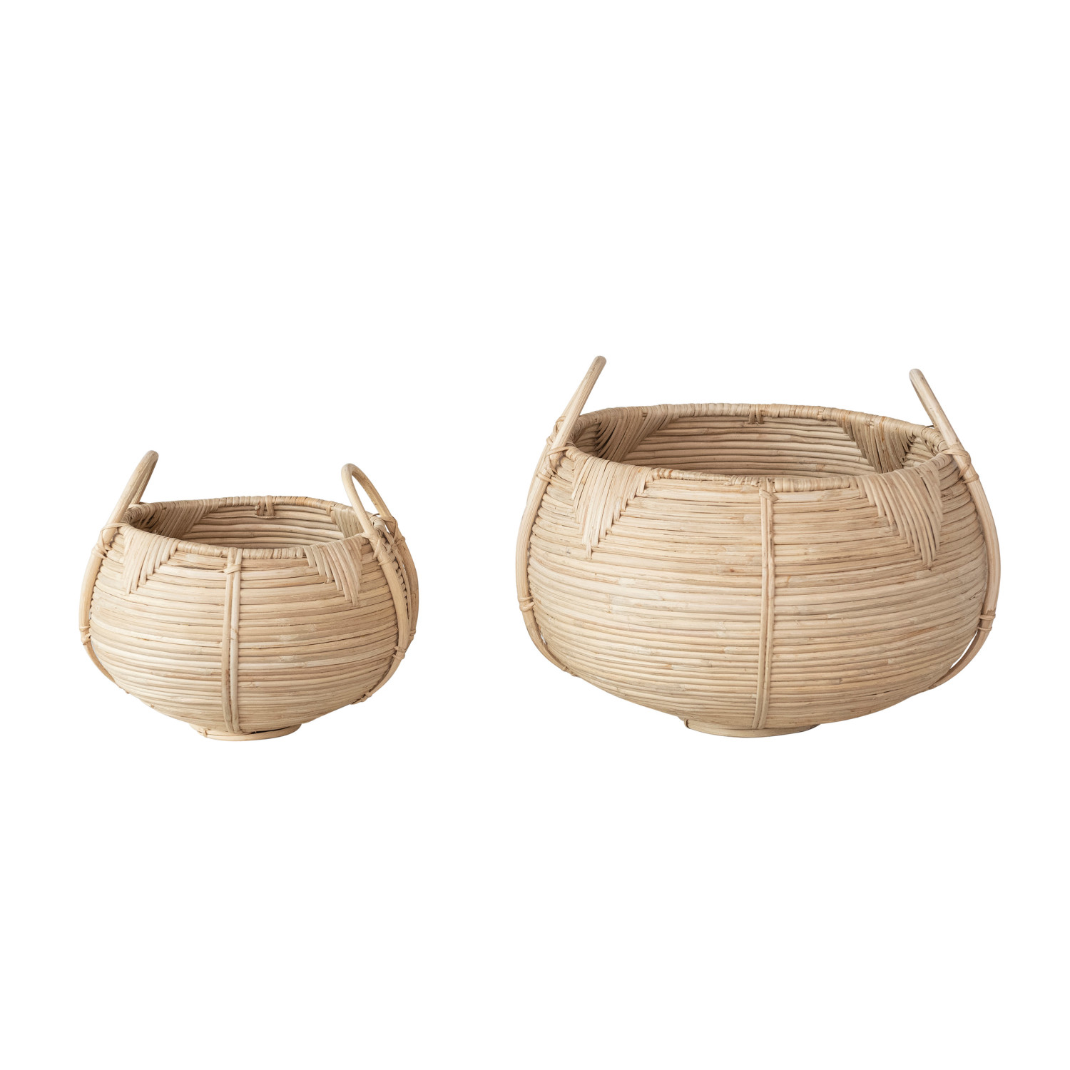 Catalog Name: 17-3/4" Round x 11"H & 12-1/2" Round x 8-3/4"H Decorative Hand-Woven Rattan Baskets w/ Handles, Natural, Set of 2
