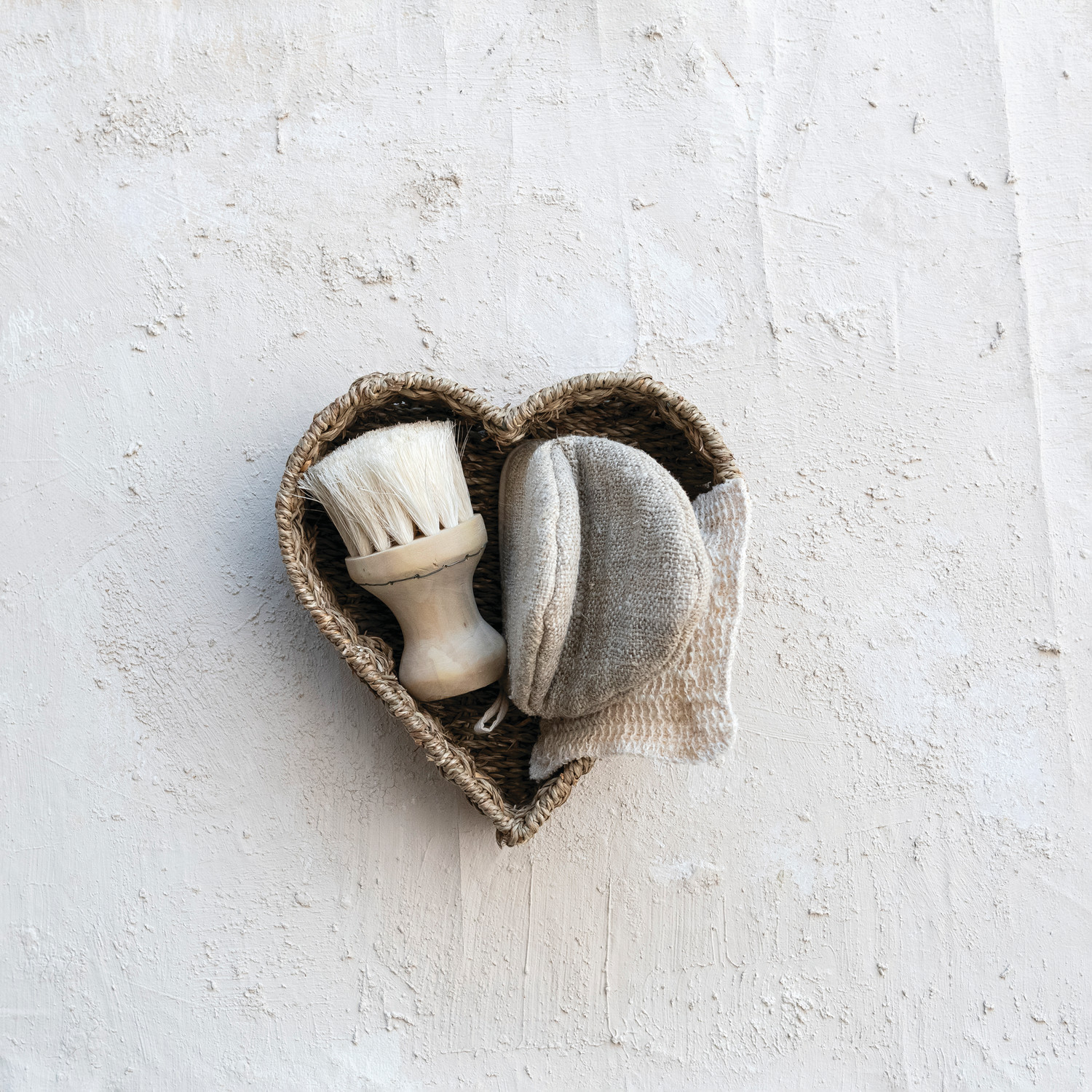 Catalog Name: 9-1/2"L x 8-1/2"W x 3-1/4"H Hand-Woven Seagrass & Metal Heart Shaped Basket, Natural