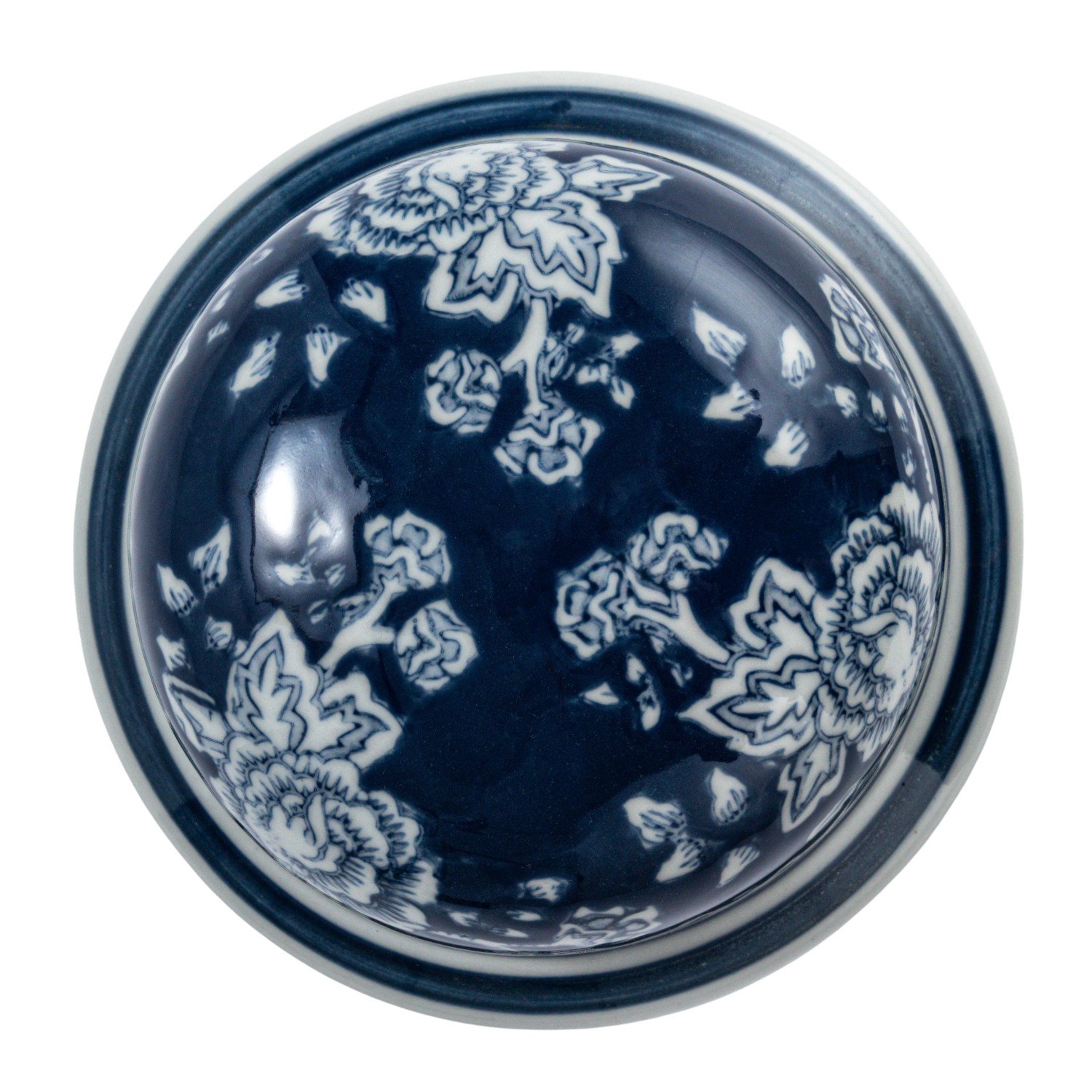 Catalog Name: 7" Round x 12-1/2"H Decorative Hand-Painted Ceramic Ginger Jar w/ Flowers, Blue & White