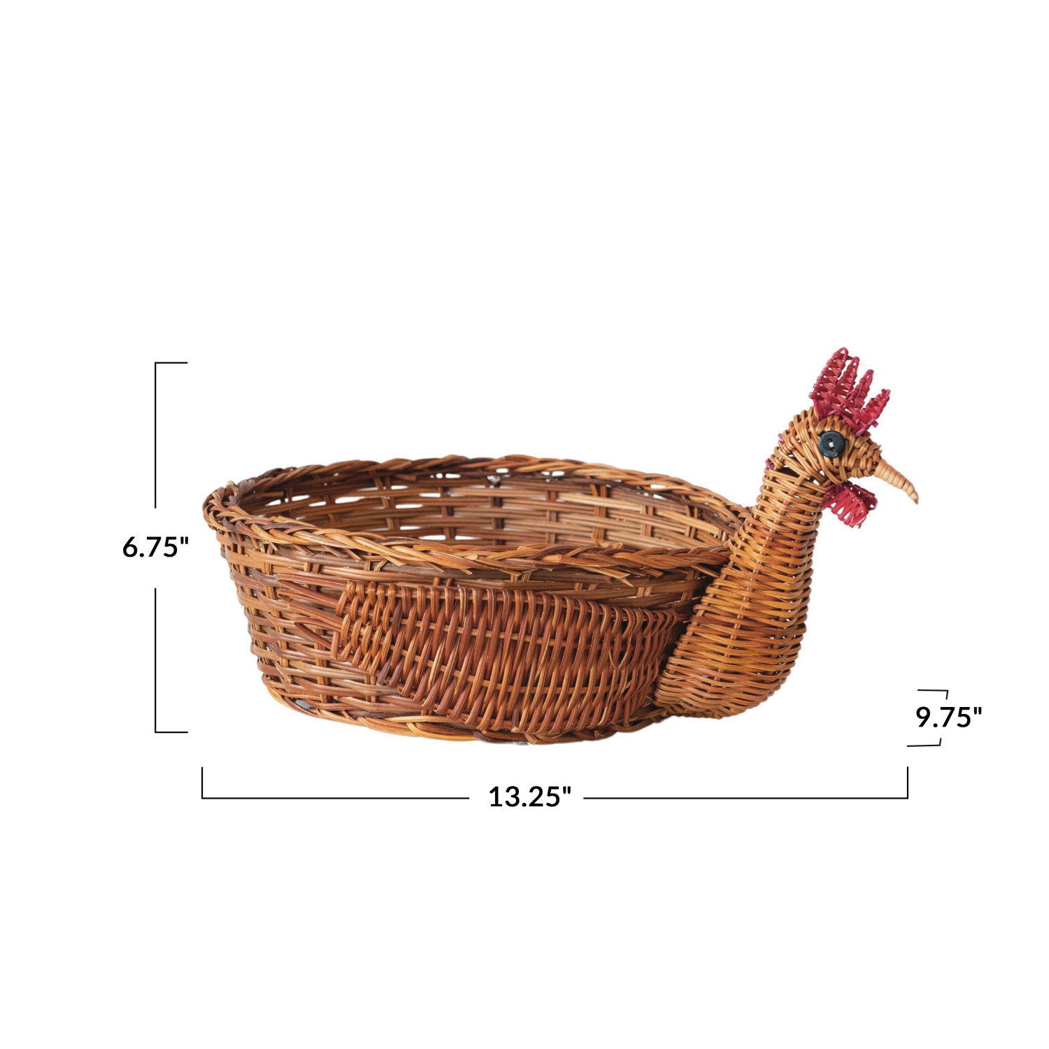 Catalog Name: 13-1/4"L x 9-3/4"W x 6-3/4"H Decorative Woven Fern Chicken Shaped Basket, Natural