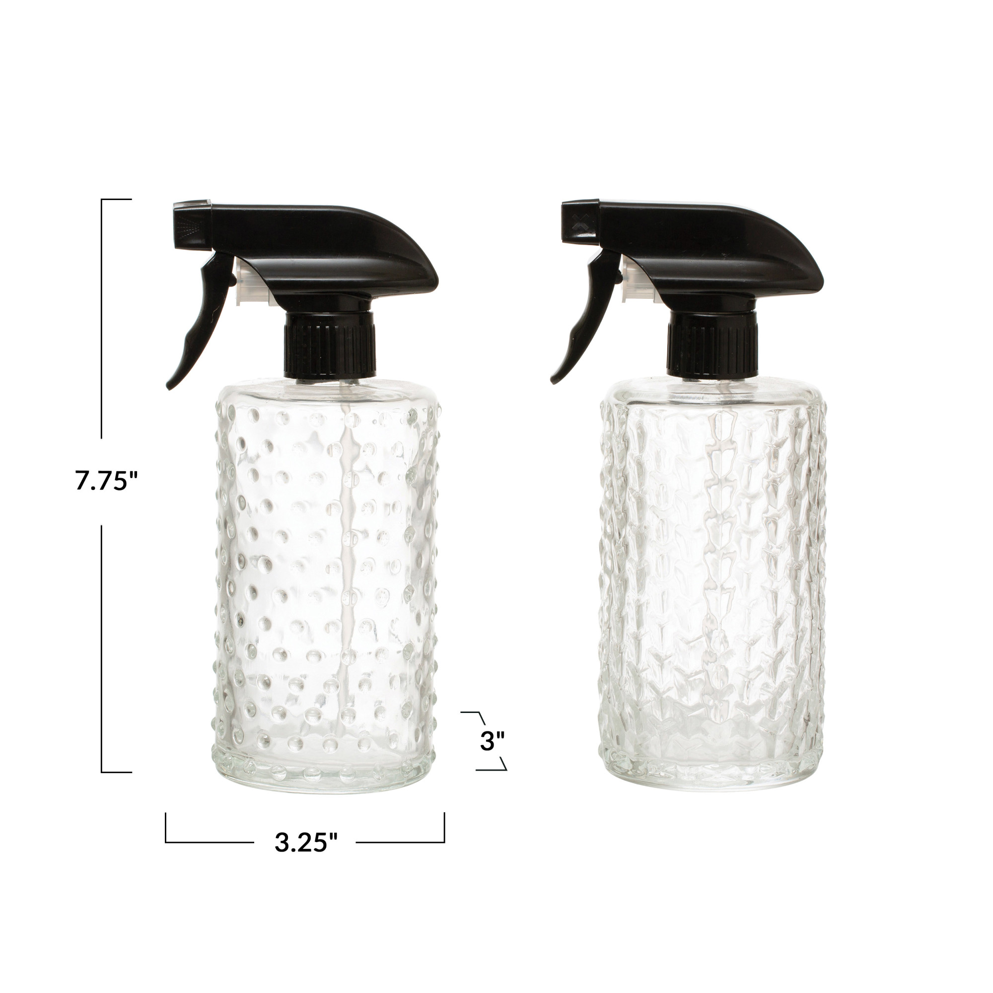 Catalog Name: 3-1/4"L x 3"W x 7-3/4"H Pressed Glass Spray Bottle, 2 Styles
