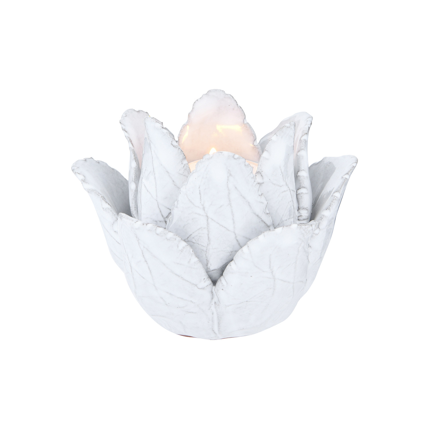 Add warmth to the room decor by lighting a tealight candle in this handmade off-white terracotta candleholder in the shape of a flower. While adding a soothing ambience, it will create a special and relaxed atmosphere. For a cozy room decor, light candles in various areas of the room.