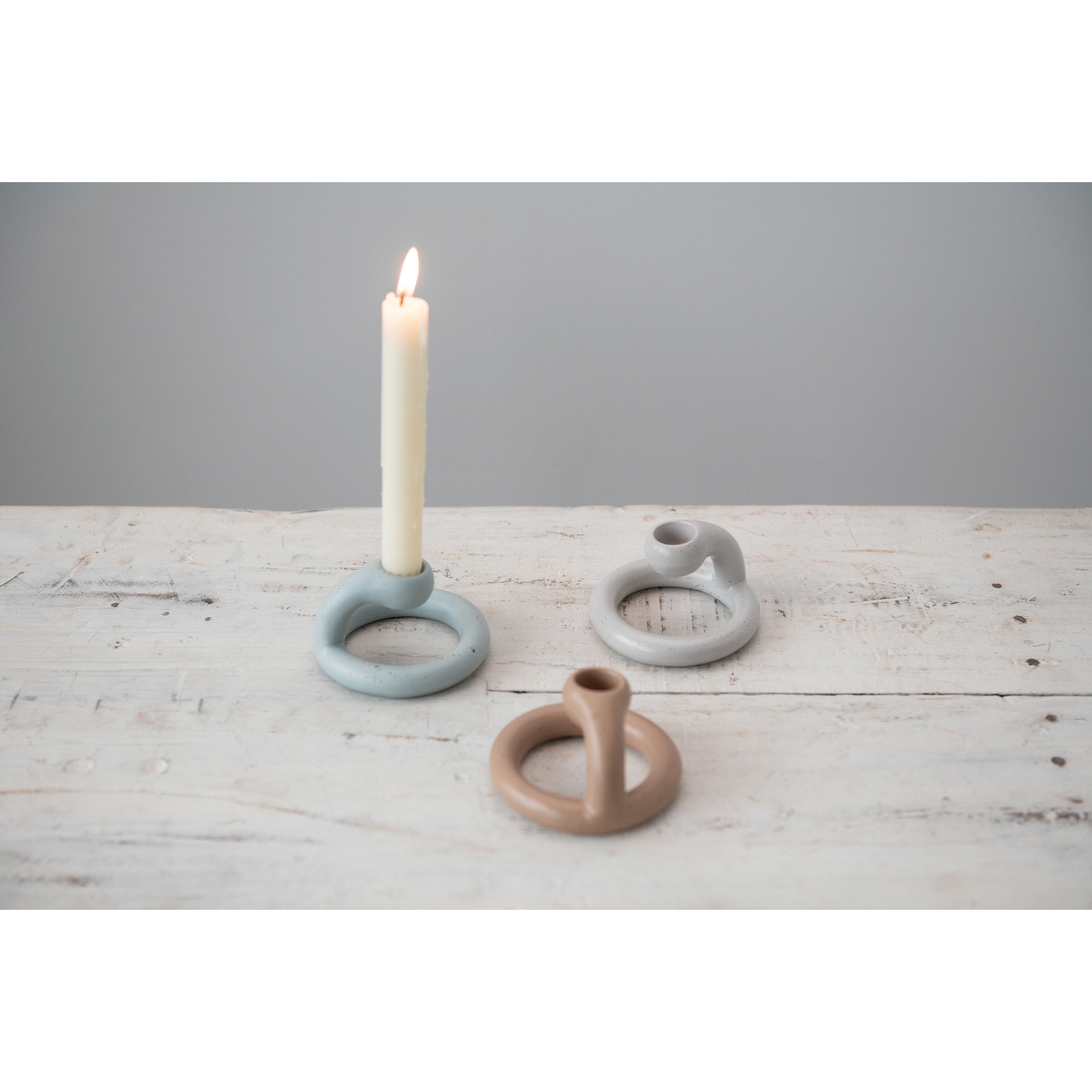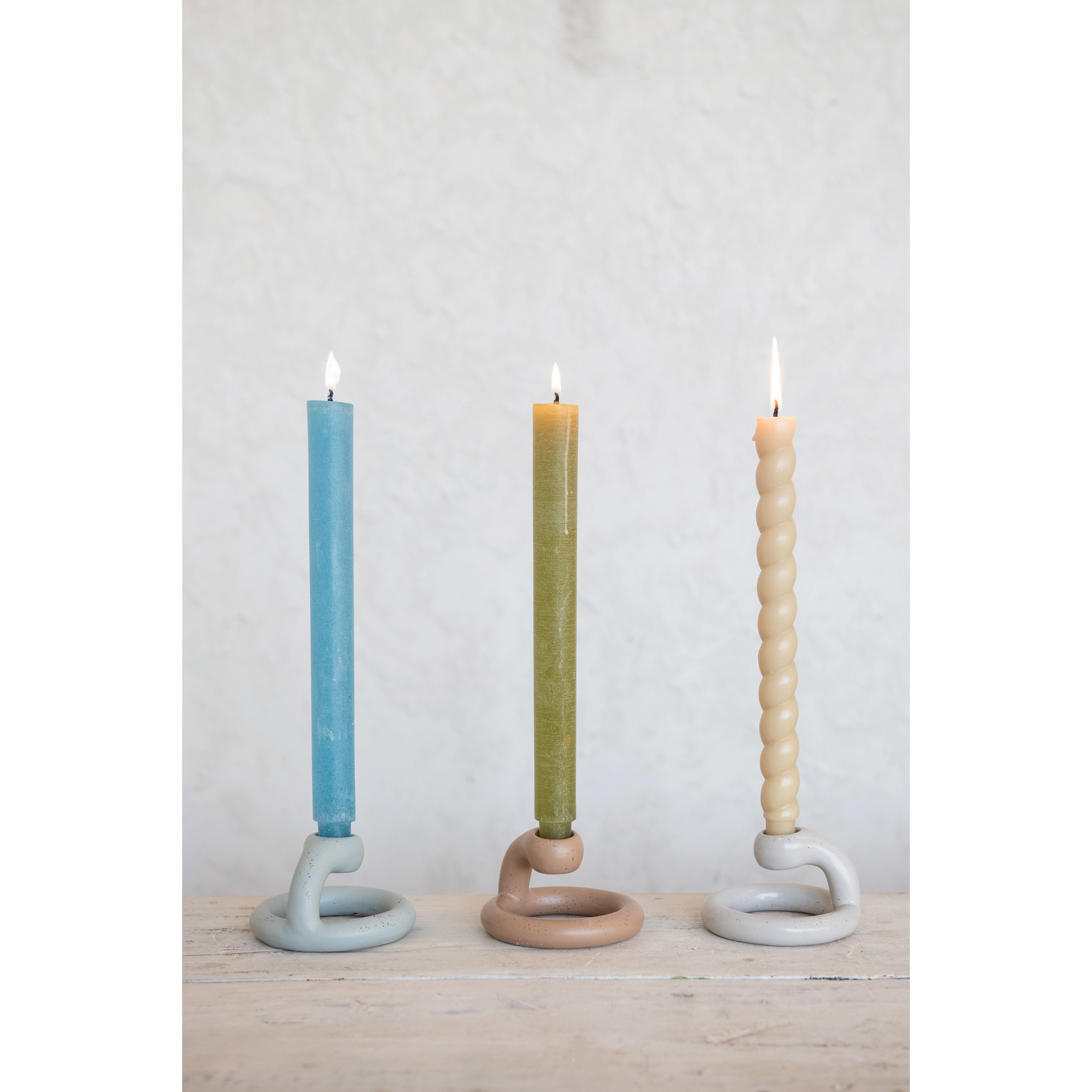 These taper holders are an effortless way to add both style and ambience to any home. These come in 3 different colors, and each features a matte reactive glaze finish. These are perfect for adding ambient lighting to intimate gatherings, dinners, and parties.