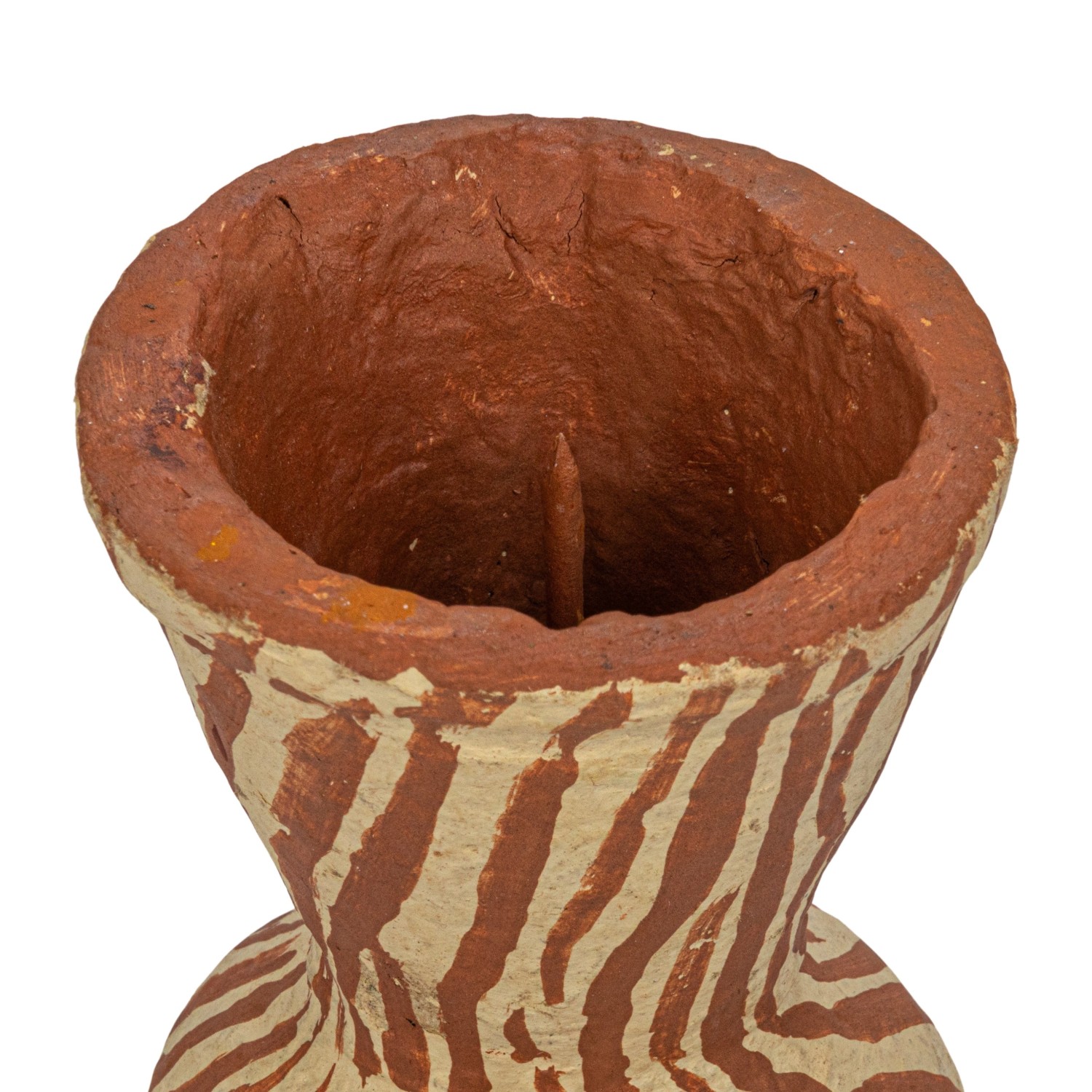 Catalog Name: Approximately 3-1/2" Round x 5"H Handmade Paper Mache Taper Holder w/ Design, Terra-cotta Color & Beige (Each One Will Vary)