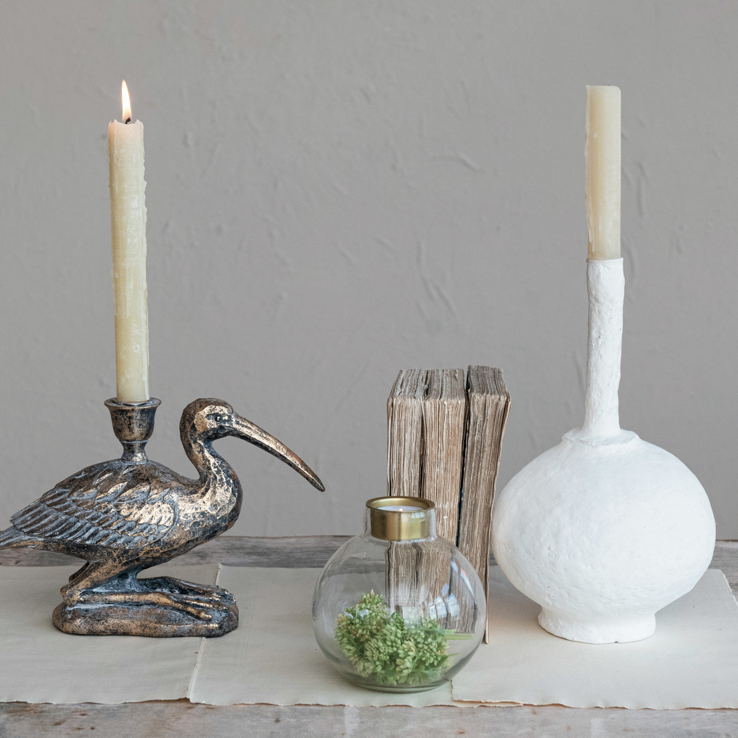 Catalog Name: Approximately 6-1/2" Round x 11"H Handmade Paper Mache Taper Holder, Matte White