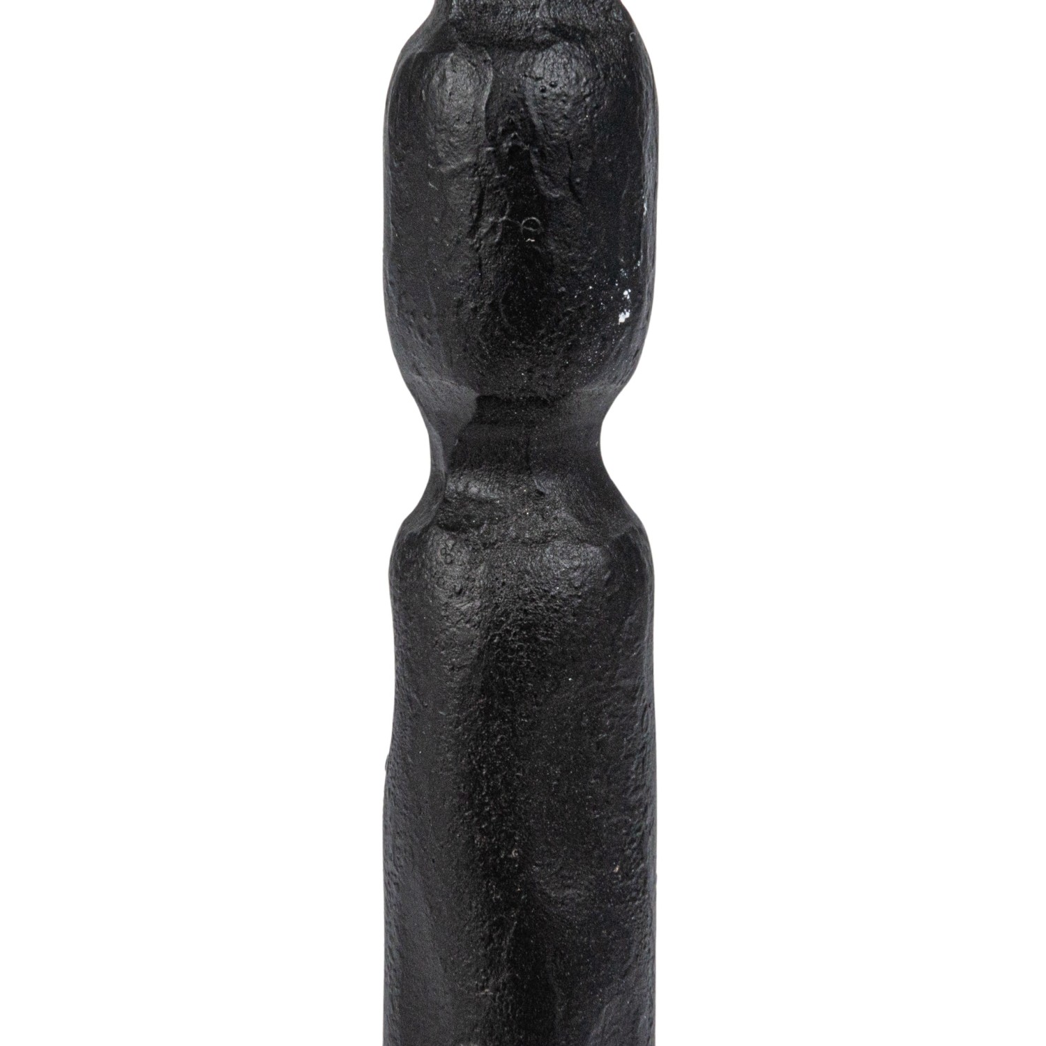 This taper holder is a beautiful and functional piece that will enhance the home with its rustic charm. The taper holder is hand-forged metal, shaped, and hammered by skilled artisans. The metal has a black finish that adds contrast and depth to the space. The taper holder has a round base and a slender stem that can hold most standard taper candles. Place this on any surface or setting, creating a cozy and inviting ambiance with its subtle light. Whether used for decoration or illumination, this taper holder will add a touch of sophistication and simplicity to the space. It measures 3.75 inches in diameter and 12 inches in height, suitable for holding most standard taper candles. This candle holder is the perfect way to add color and charm to any room.