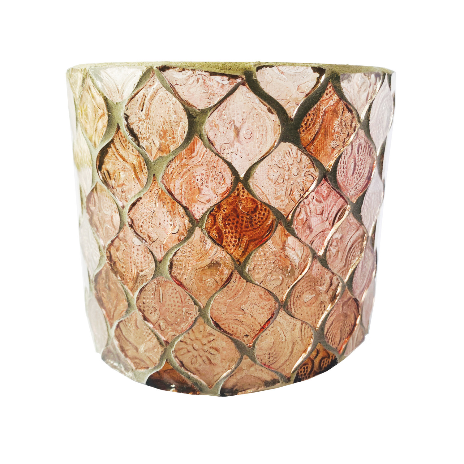 Catalog Name: 4-1/4" Round x 4"H Recycled Glass Mosaic Tealight/Votive Holder, Plum Color