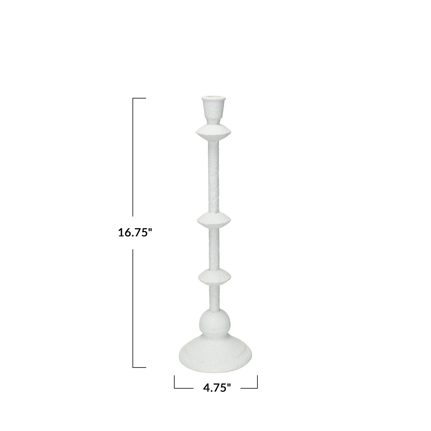 Catalog Name: 4-3/4" Round x 16-3/4"H Textured Metal Taper Holder, Antique White