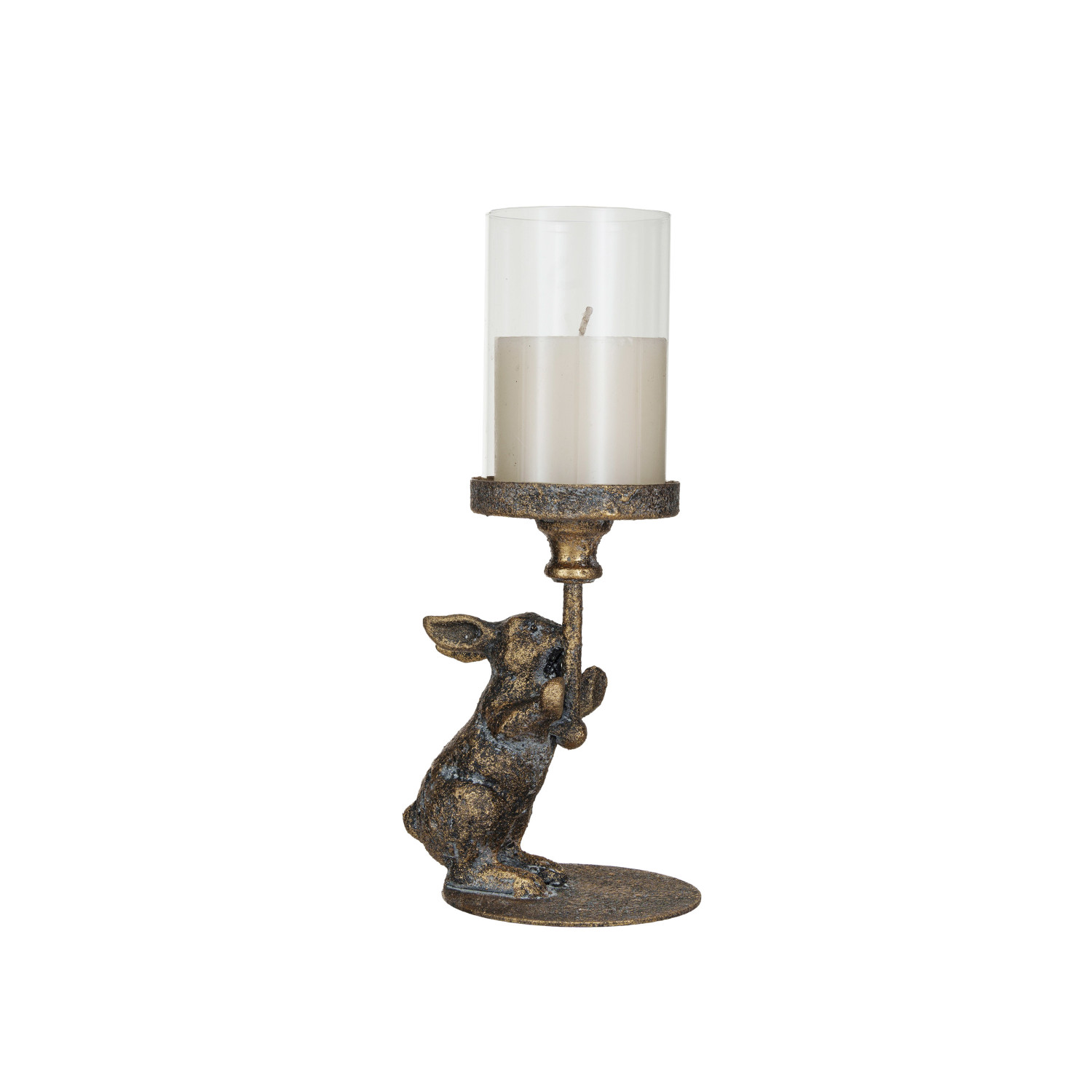 Metal Rabbit Candle Holder w/ Glass Hurricane (Holds 3" Pillar)