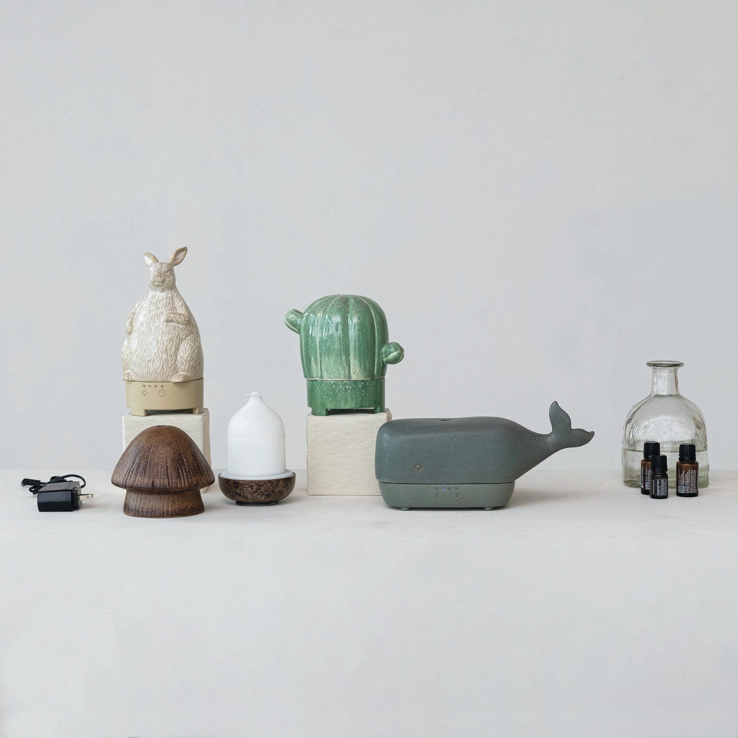 Stoneware Cactus Shaped Oil Diffuser w/ Timer (Each One Will Vary)