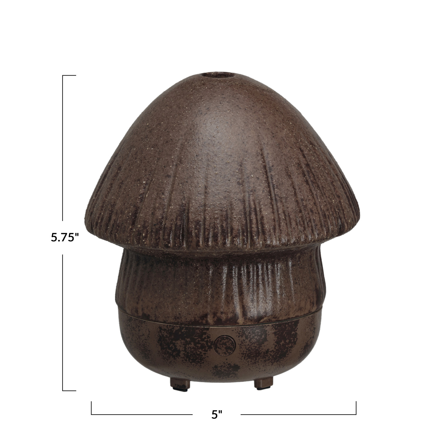 This Textured Stoneware Mushroom Shaped Oil Diffuser brings the allure of the forest indoors with its rich brown hue and distinctive texture. The reactive glaze technique creates a unique pattern on each diffuser, adding to its charm. A convenient 1-3 hour timer allows for worry-free operation, perfect for maintaining a consistent ambiance. The diffuser's mushroom shape is not only whimsical but also a nod to nature's beauty, making it a delightful addition to any space seeking a sprinkle of enchantment. It measures 5 inches in diameter and 5.75 inches in height, a quaint size for nestling among varied indoor plants. Its compact size ensures it fits snugly wherever it's placed, inviting a warm and mystical vibe into the surroundings.