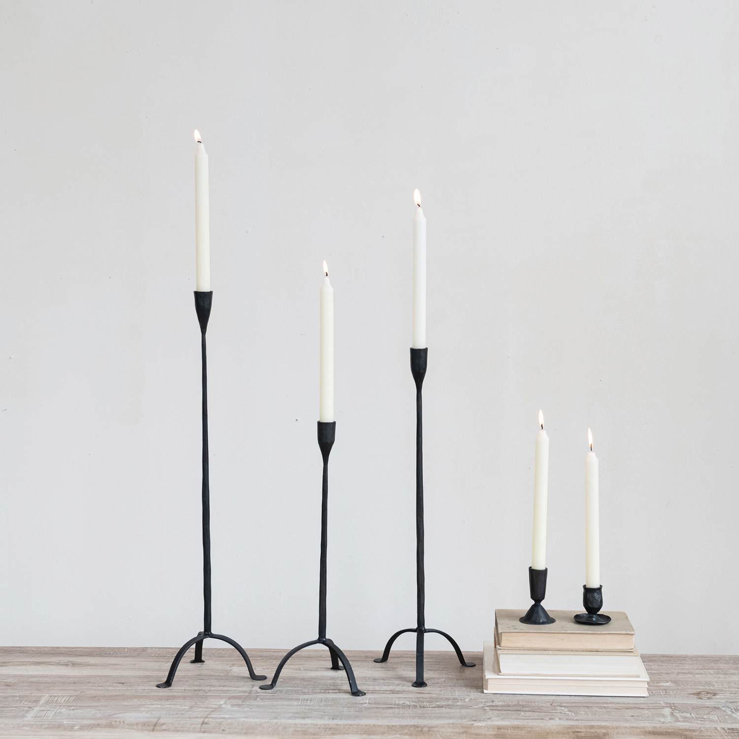 Catalog Name: 6-3/4"L x 6-3/4"W x 20"H Hand-Forged Cast Iron Footed Taper Holder