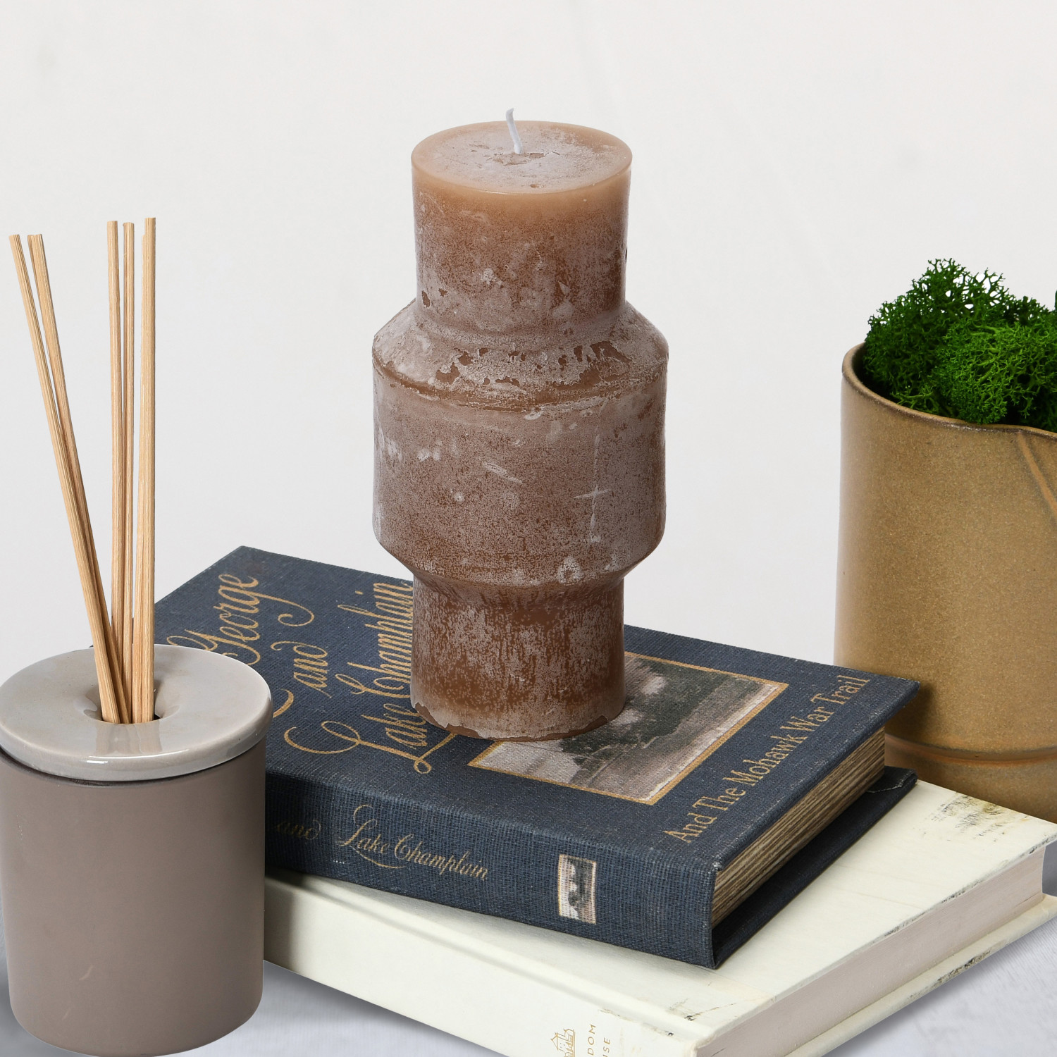 This intricately carved totem pillar candle showcases a striking sculpturesque design. Mix and match the hues and sculptural silhouettes of our artfully crafted totems and tapers for a refined candlelight arrangement on a dining table or mantelpiece.