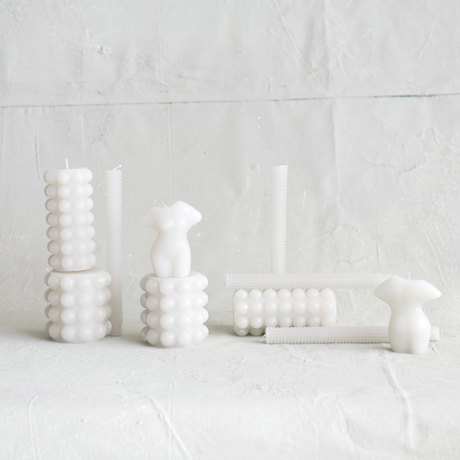 This intricately carved set of taper candles showcases a striking hobnail design. Mix and match the hues and sculptural silhouettes of our artfully crafted totems and tapers for a refined candlelight arrangement on a dining table or mantelpiece.