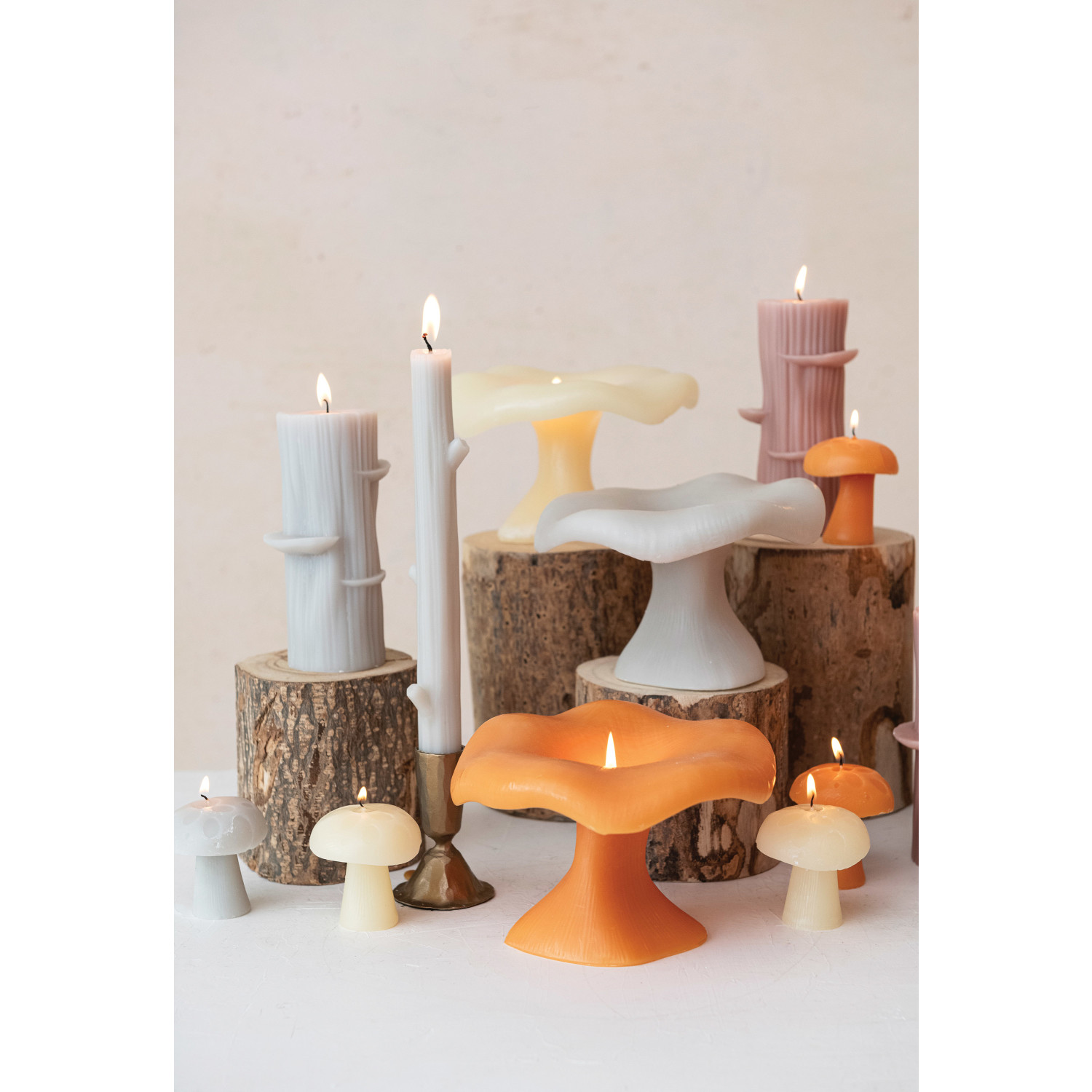 This unscented mushroom-shaped candle in a set of 4 is a beautiful way to add some whimsy and charm to the home. The candles are made of paraffin wax that is safe and long-lasting. The candles have a round shape and a mushroom-like cap in various colors, such as cream, olive, grey, and orange. The candles measure 10.75 inches in length, 3 inches in width, and 3 inches in height and have an approximate burn time of 2 hours each. Use these candles for decorating or creating a cozy atmosphere in the garden, cottagecore, farmhouse, cabin, or woodland-style home. These unscented mushroom-shaped candle sets are versatile and beautiful pieces that enhance the space. Create an inviting atmosphere with these candle collections.