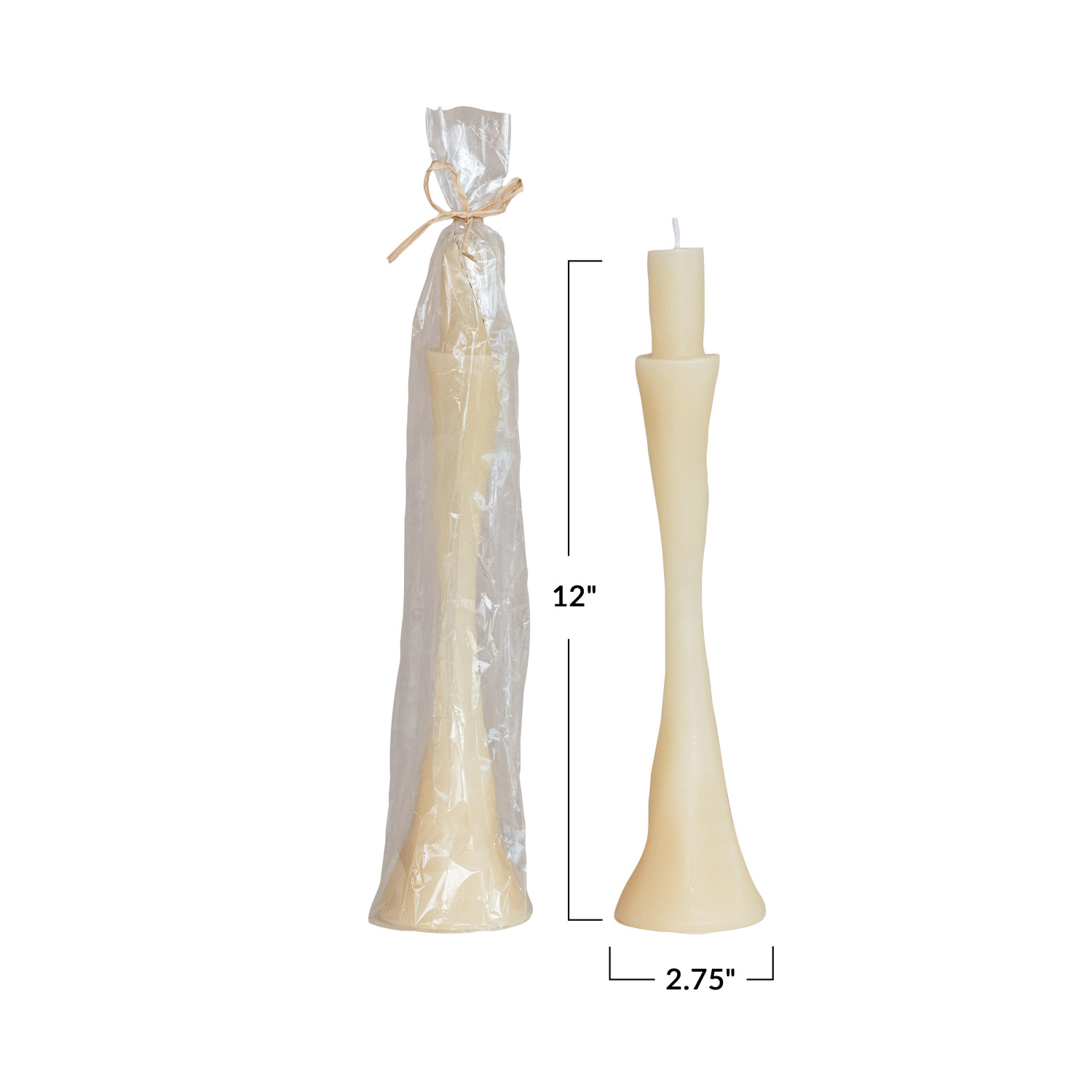 Unscented Taper in Taper Holder Shaped Candle, Cream Color