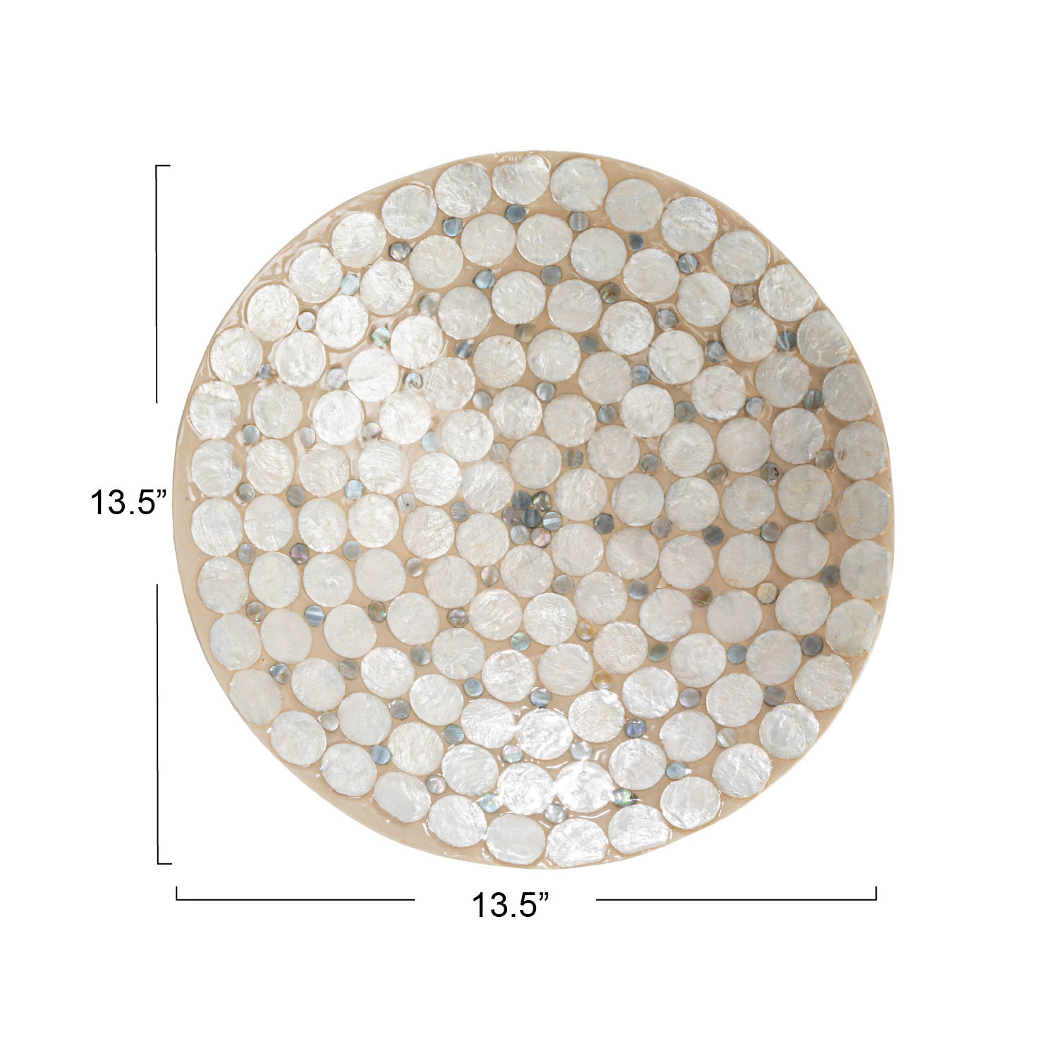 Catalog Name: 14-1/2" Round x 3-1/4"H Decorative Resin & Capiz Bowl, White & Natural