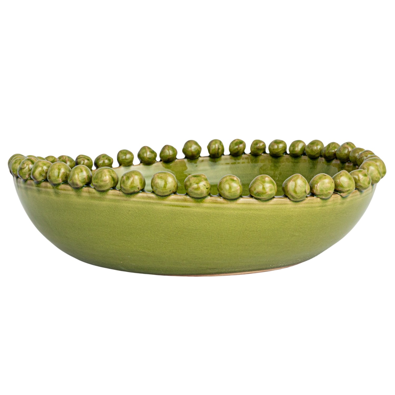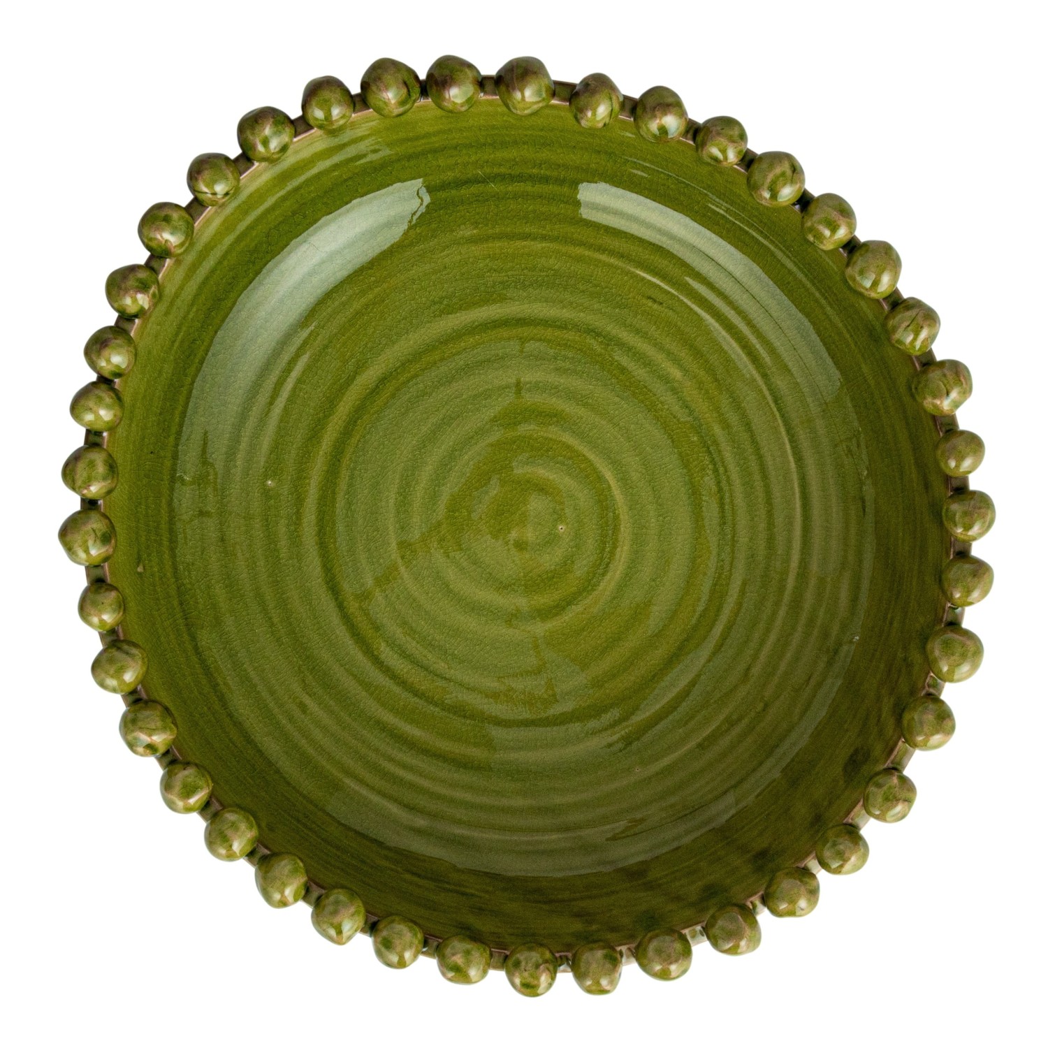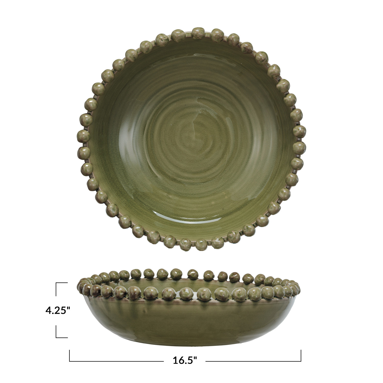 Catalog Name: 16-1/2" Round x 4-1/4"H Decorative Handmade Terra-cotta Bowl w/ Hobnail Edge, Reactive Glaze, Green (Each One Will Vary)