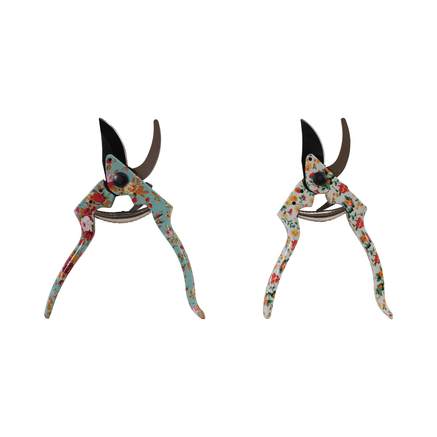 Catalog Name: 8"L Aluminum & Stainless Steel Garden Pruning Shears w/ Floral Patterned Handle & Blade Protector, Multi Color, 2 Styles