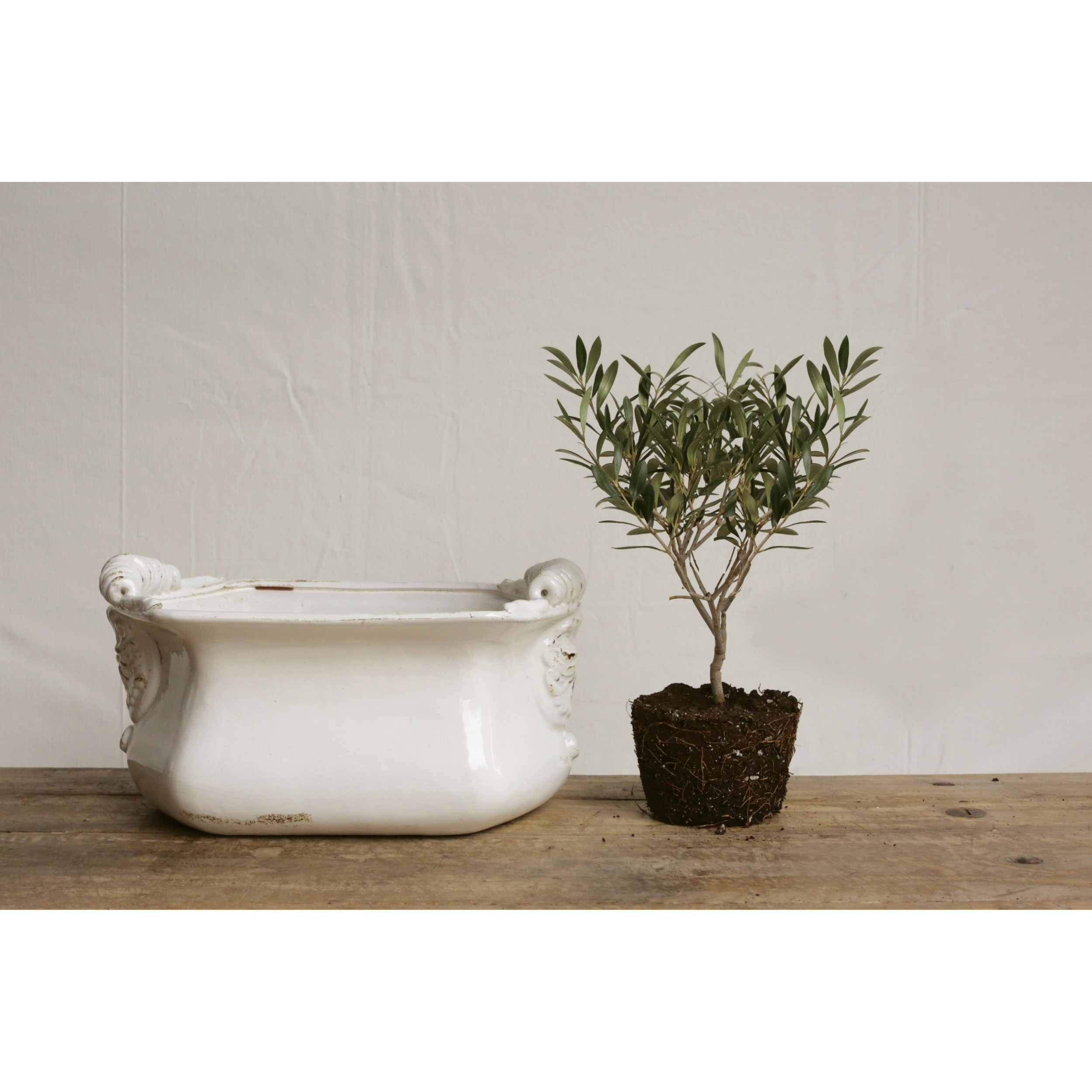 Catalog Name: 16"L x 10"W x 8"H Terra-cotta Cachepot, Crackle Glaze, Distressed Finish, White (Each One Will Vary)