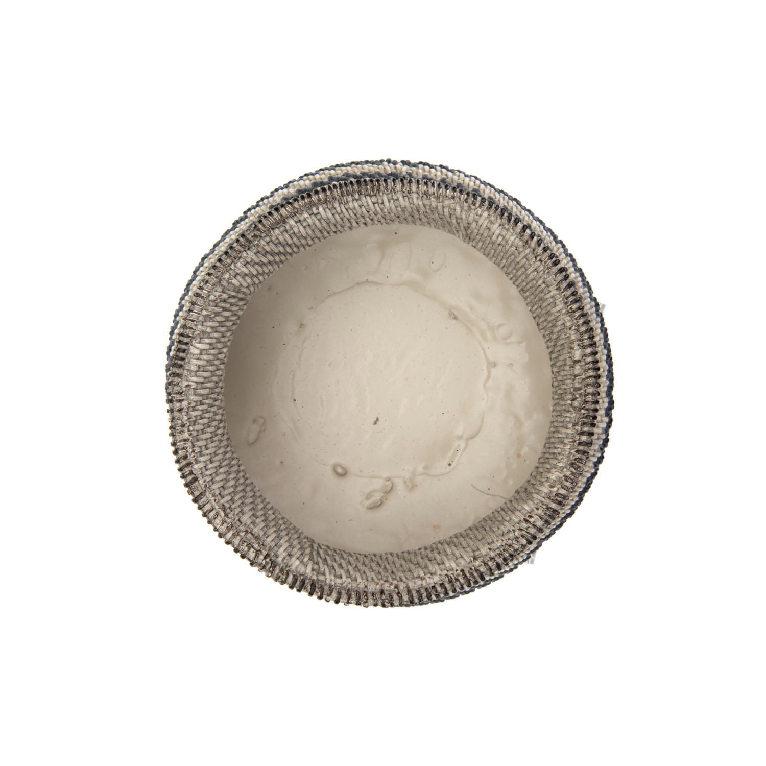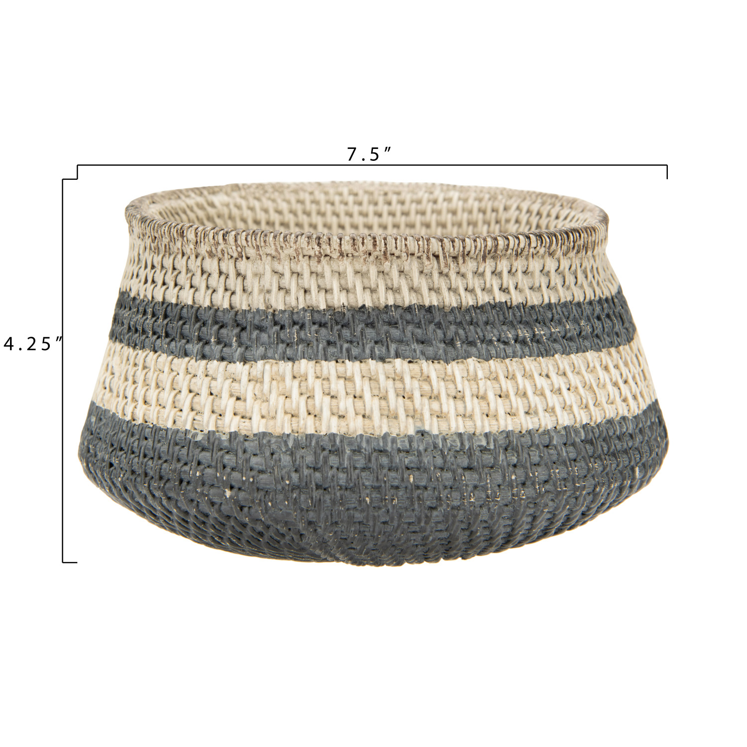 Catalog Name: 7-1/2" Round x 4-1/4"H Resin Basketweave Planter, Black Stripes