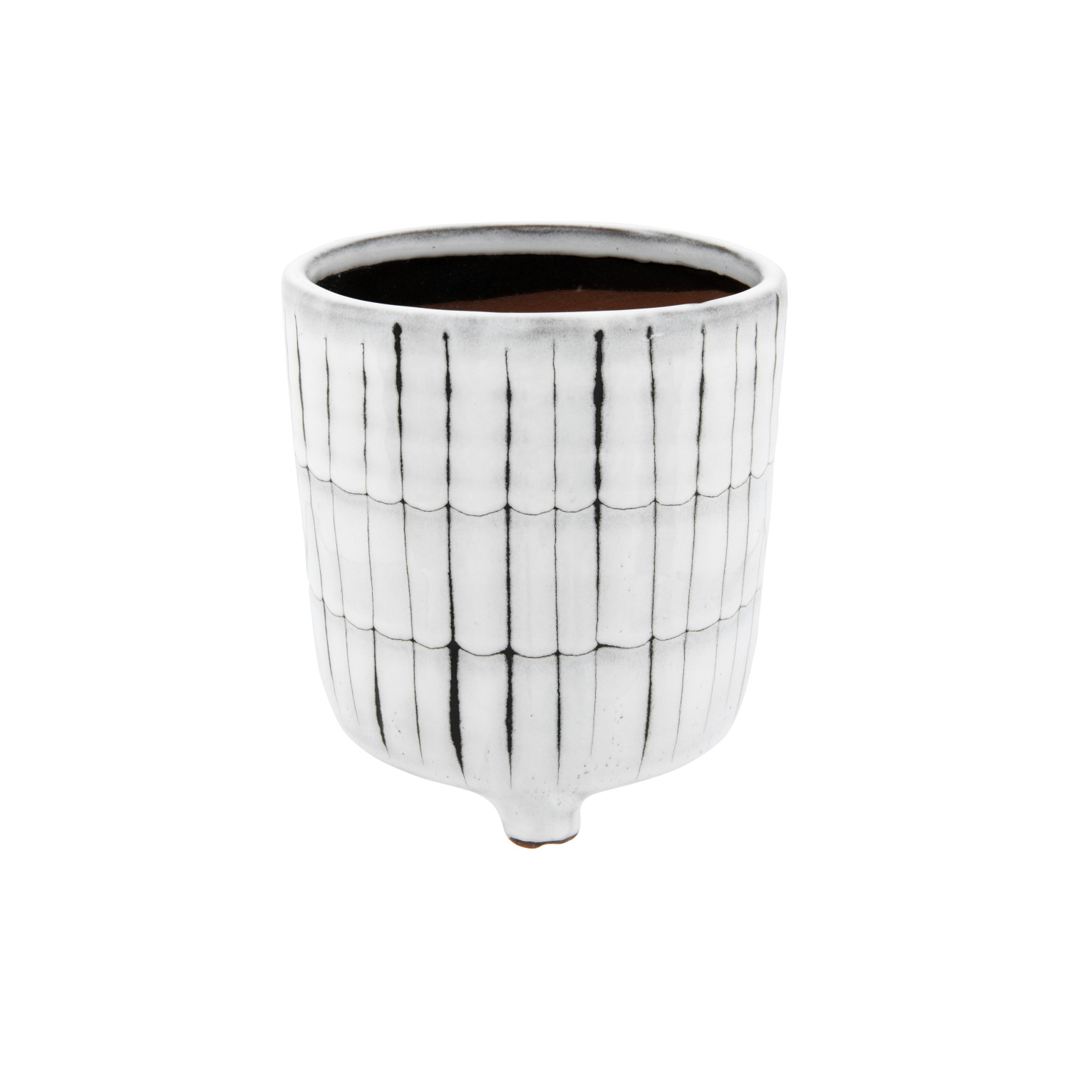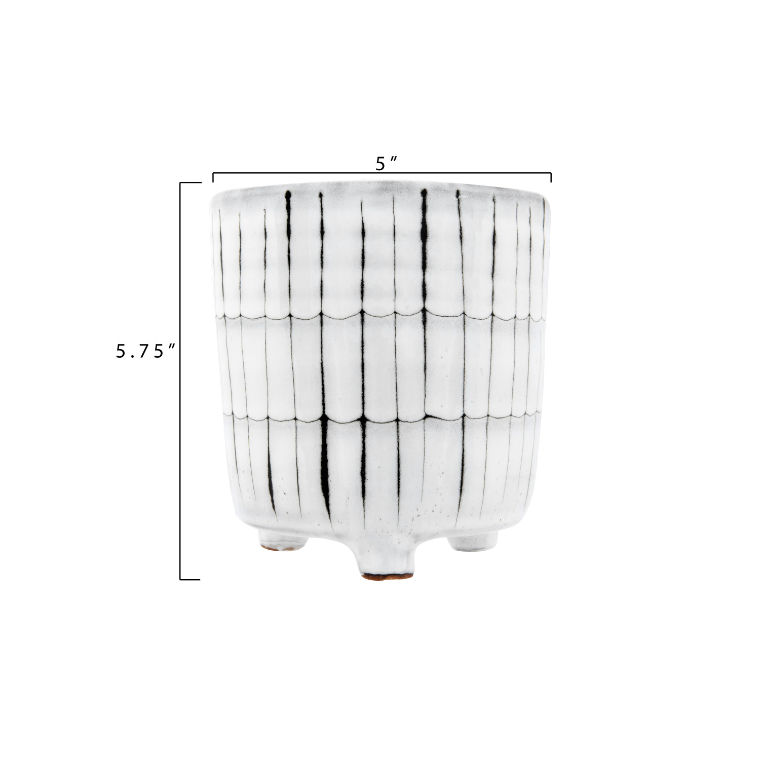 Catalog Name: 5" Round x 5-3/4"H Terra-cotta Footed Planter, White & Black (Holds 4" Pot)
