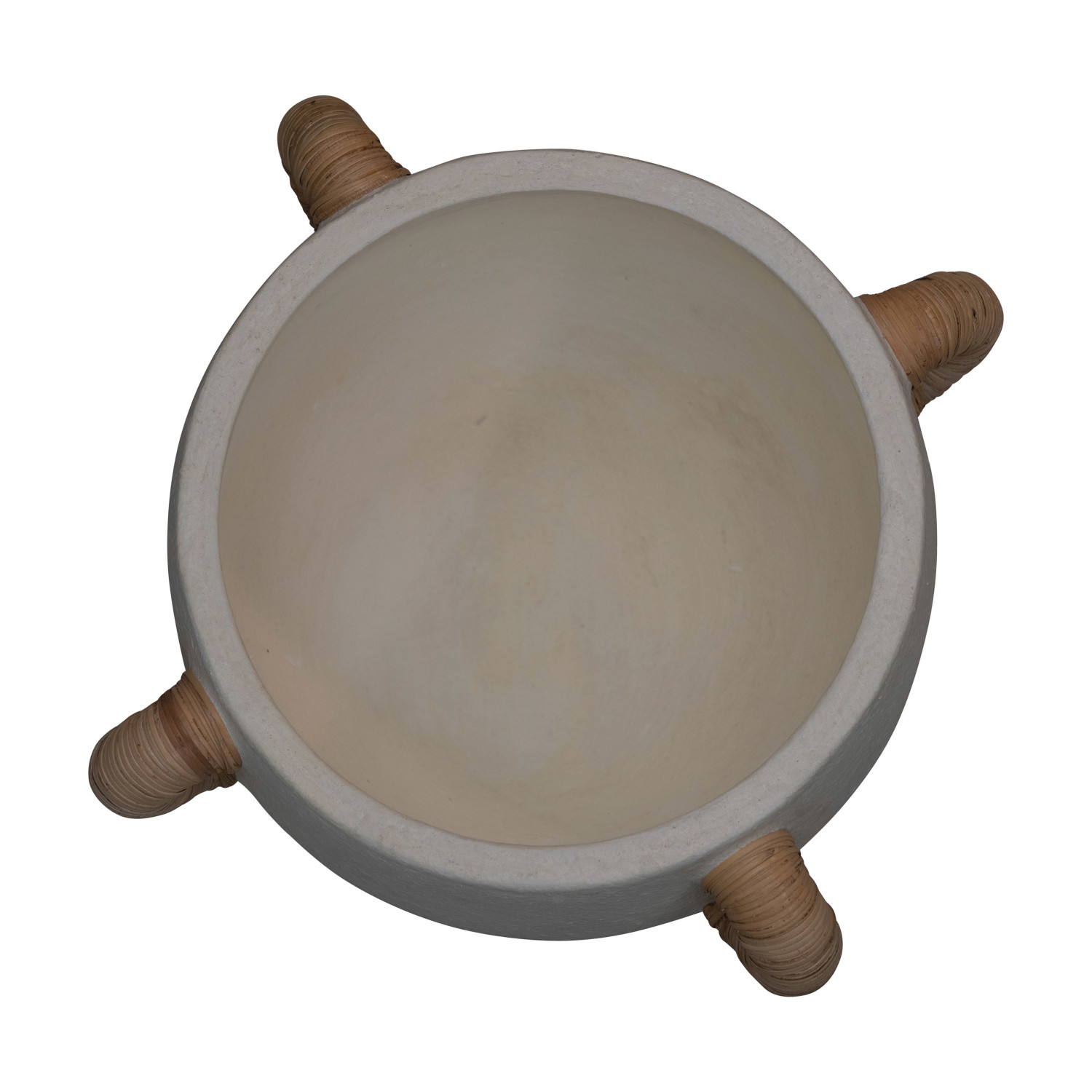 Catalog Name: 14-3/4"L x 14-3/4"W x 10"H Terra-cotta Footed Planter w/ Rattan Wrapped Handles, Cream Color & Natural, Truck Ship (Holds 10" Pot)