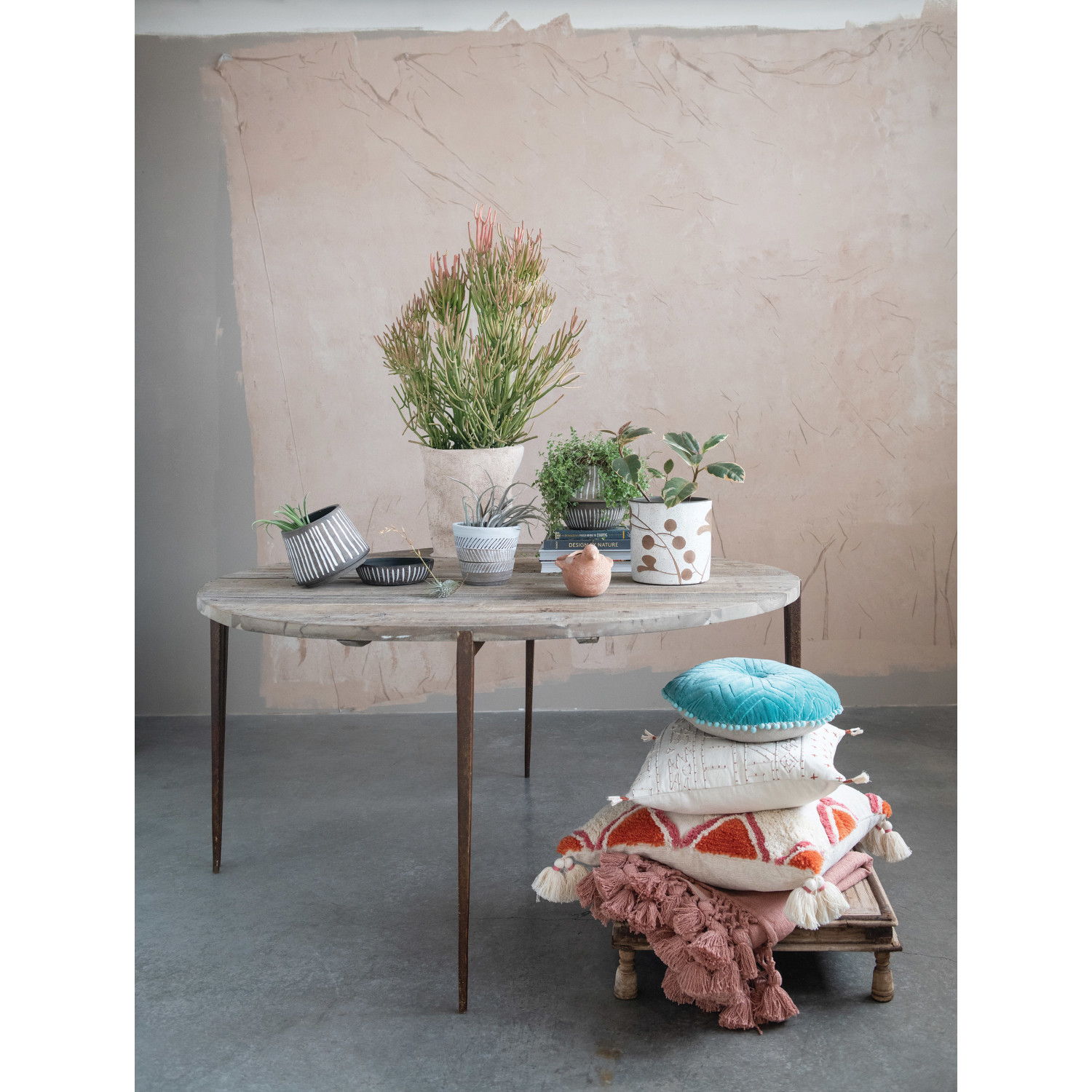 This pot is an easy and stylish way to display faux or real florals. Made out of terracotta, this pot comes with a saucer and features a brown and white pattern. This looks great on table tops and shelves, and displays any plants in a unique setting. Holds 5" Pot.